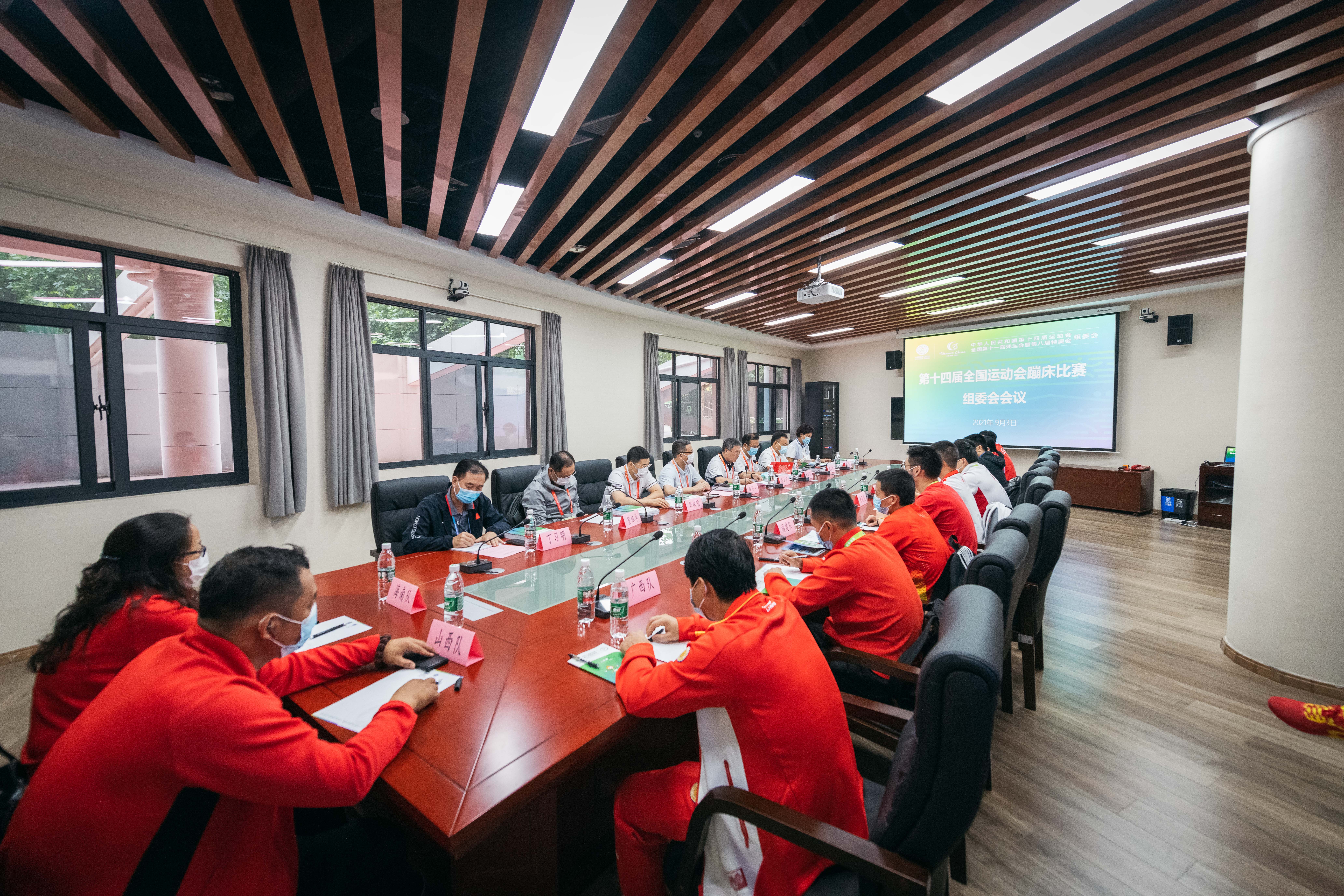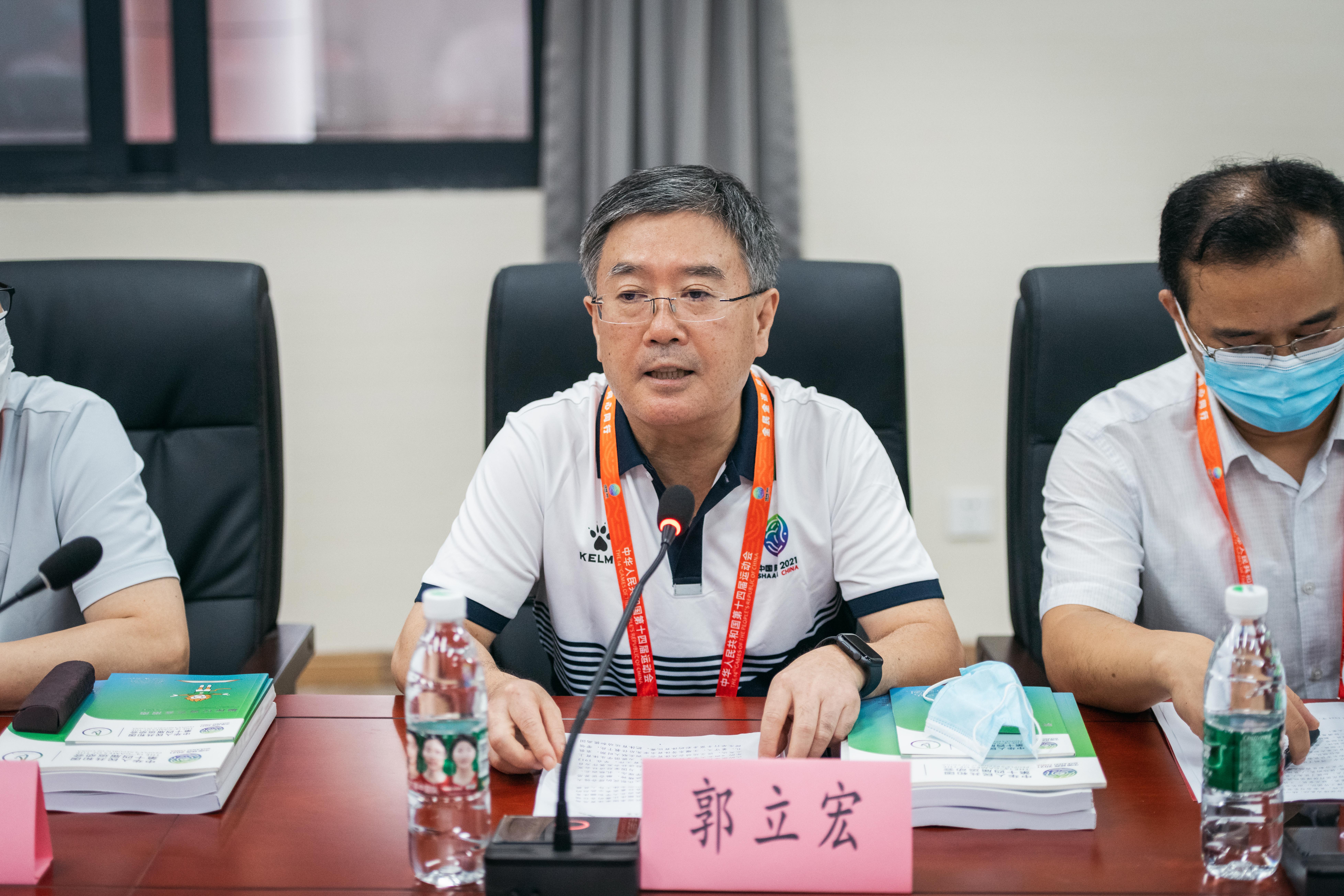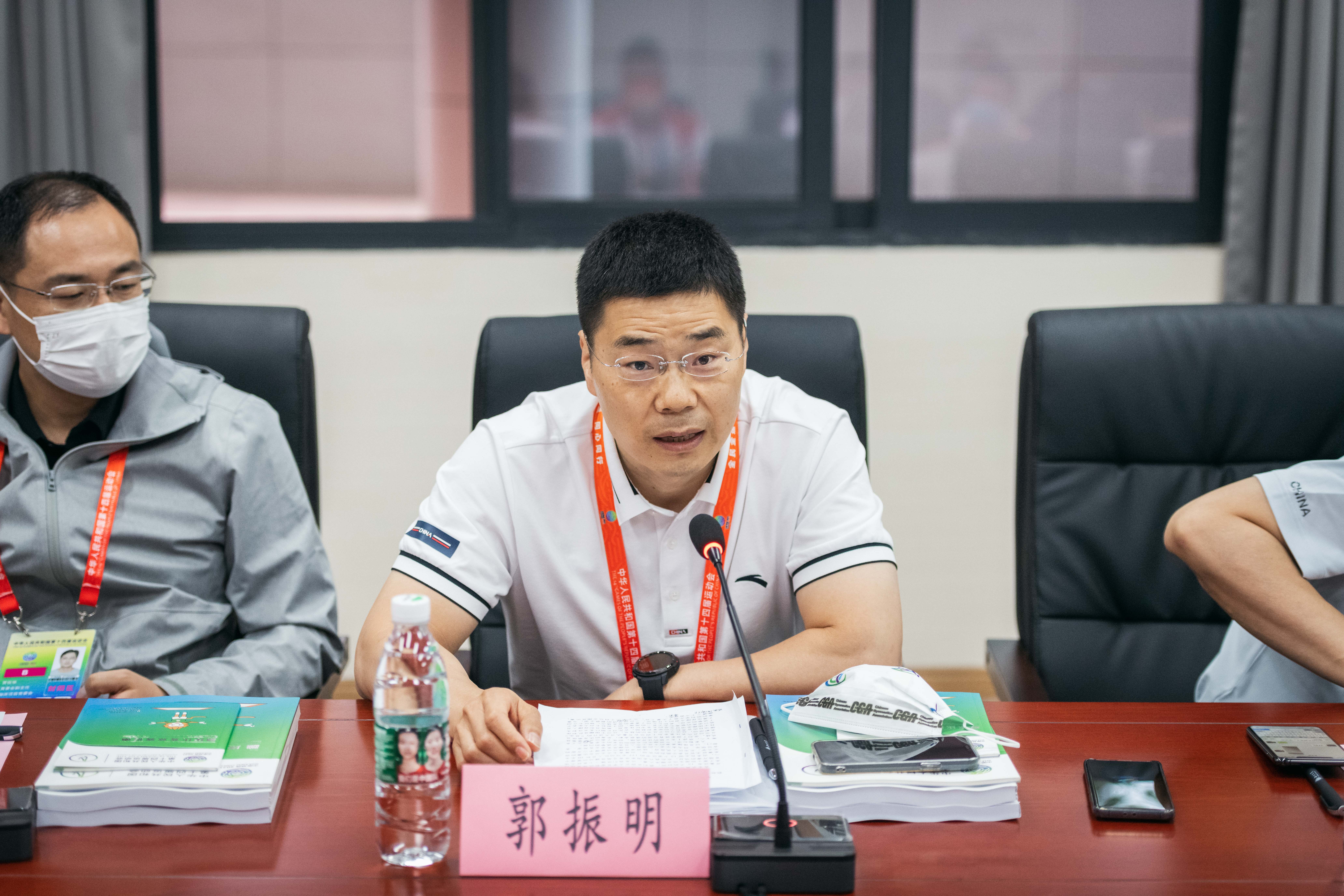 郭振明介绍了蹦床比赛参赛运动员和技术官员总体情况,通报了中国蹦床队在东京奥运会上取得的优异成绩,对做好竞赛组织提出三个要求:一要充分认识办好十四运会蹦床比赛的重要意义;二要围绕“精彩圆满”目标,全身心做好比赛的组织运行和综合保障;三要坚持不懈狠抓赛风赛纪和反兴奋剂工作。