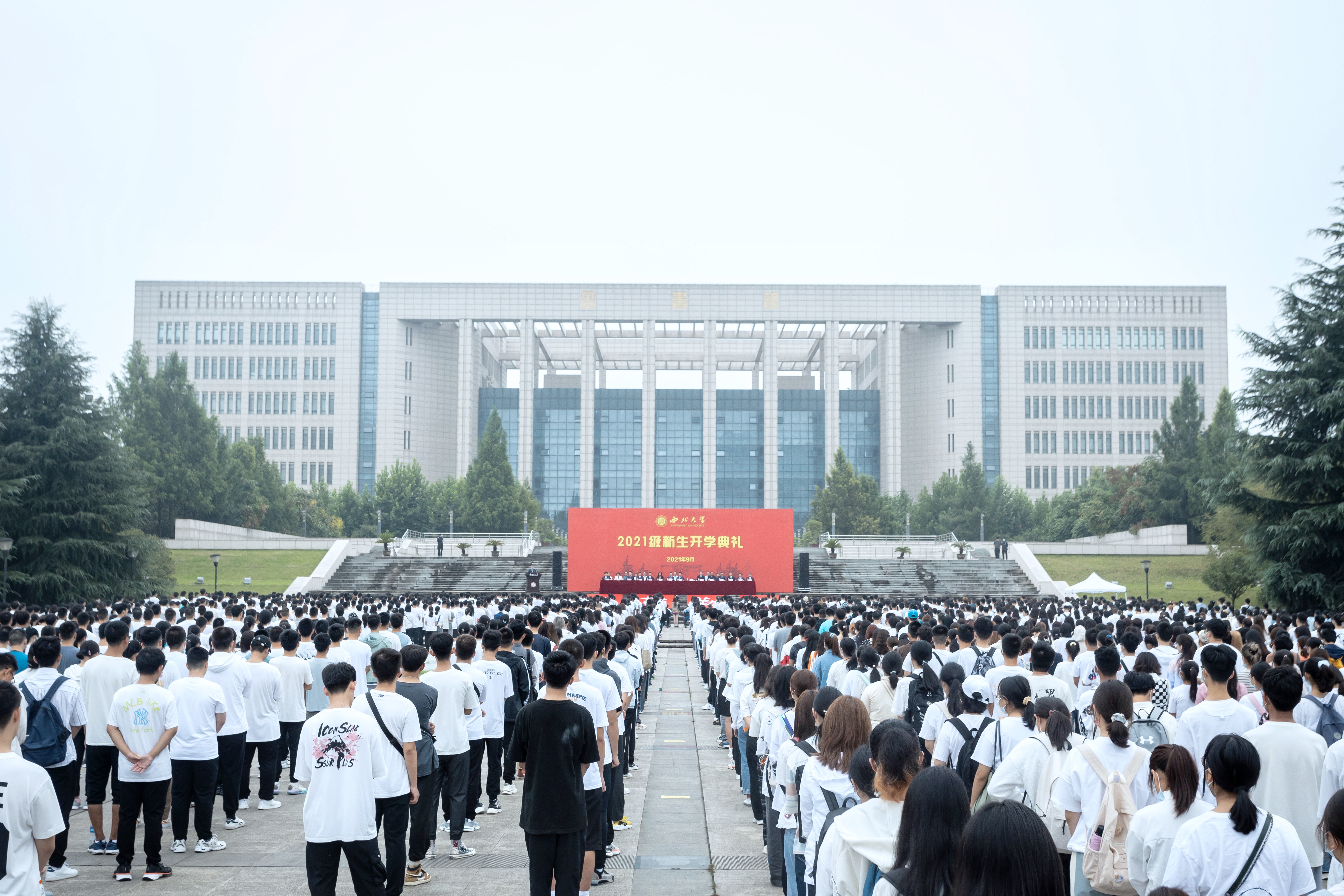 9月3日上午,乐鱼网页版页面登录2021级新生开学典礼在长安校区中心广场举行。