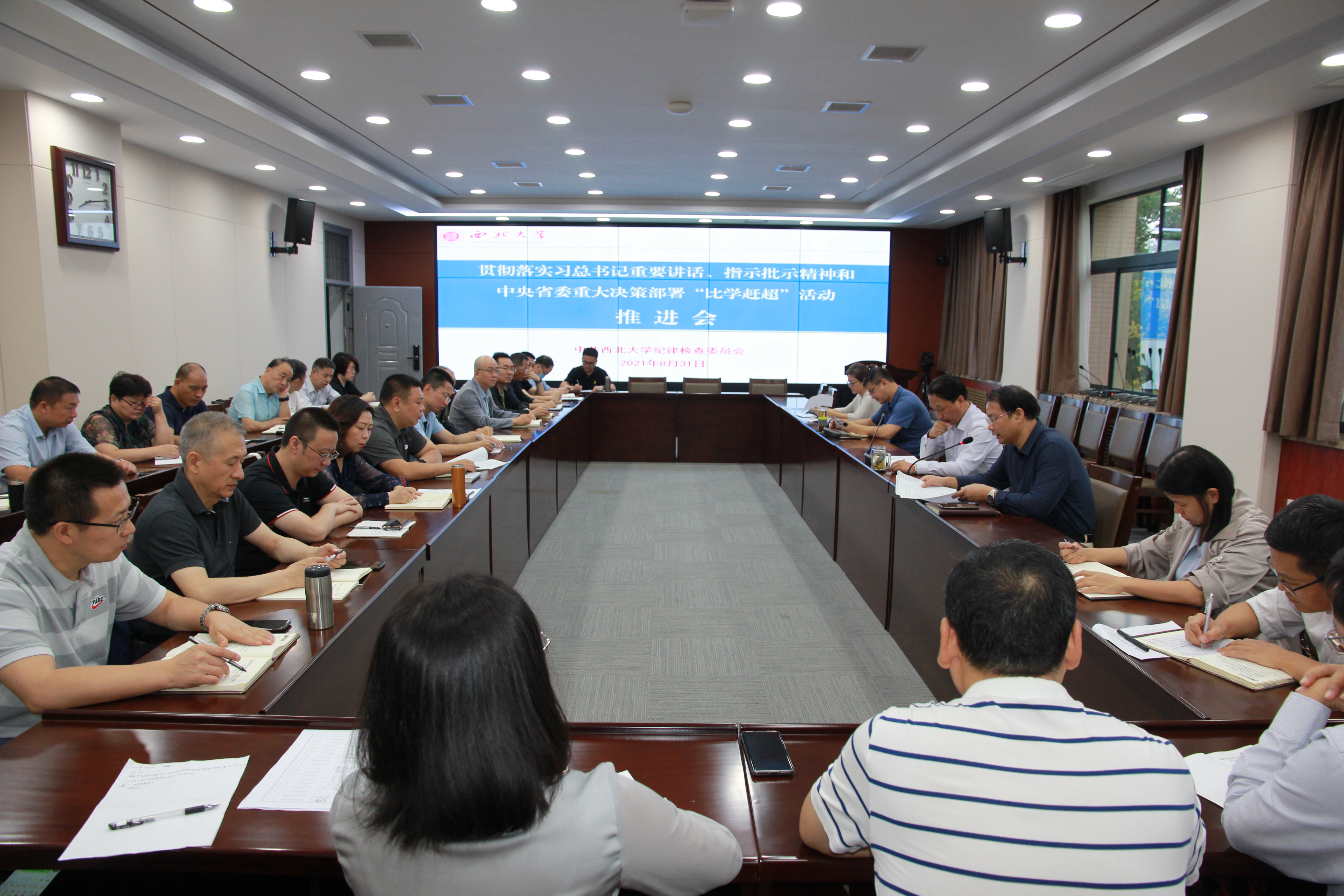 8月31日上午,学校在长安校区召开贯彻落实习近平总书记重要讲话重要指示批示精神和中央、省委重大决策部署“比学赶超”活动推进会。党委办公室、校长办公室、纪检监察机构主要负责人,校内各党委(直属党支部)书记参加了会议。会议由校党委副书记、纪委书记、省监委驻校监察专员李邦邦主持。