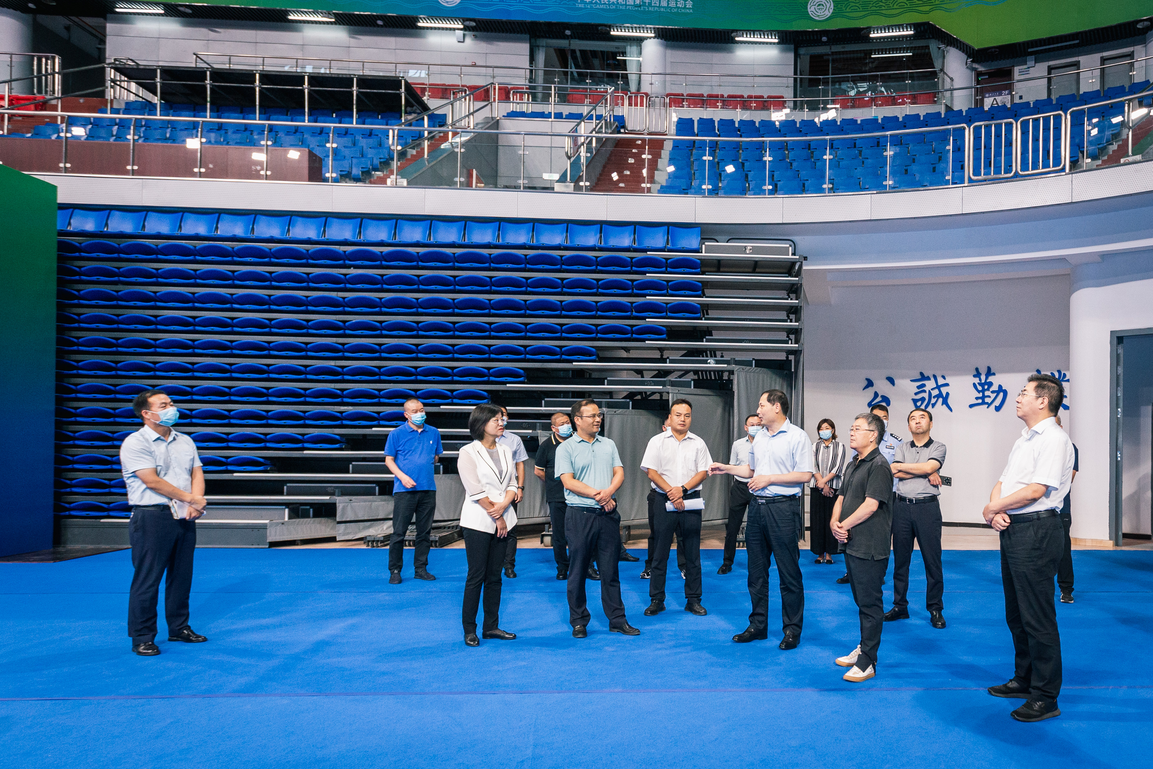 8月23日,长安区区委书记吕强,长安区人民政府区长李娴一行来乐鱼网页版页面登录检查十四运会赛事筹办工作。蹦床、艺术体操竞委会主任、校长郭立宏,竞委会执行主任、校党委常委、副校长奚家米陪同检查,竞委会各工作处负责人、长安区驻校工作专班负责人参加检查活动。