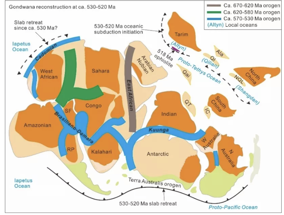 530-520 Ma冈瓦纳古大陆重建与其周缘俯冲体系分布