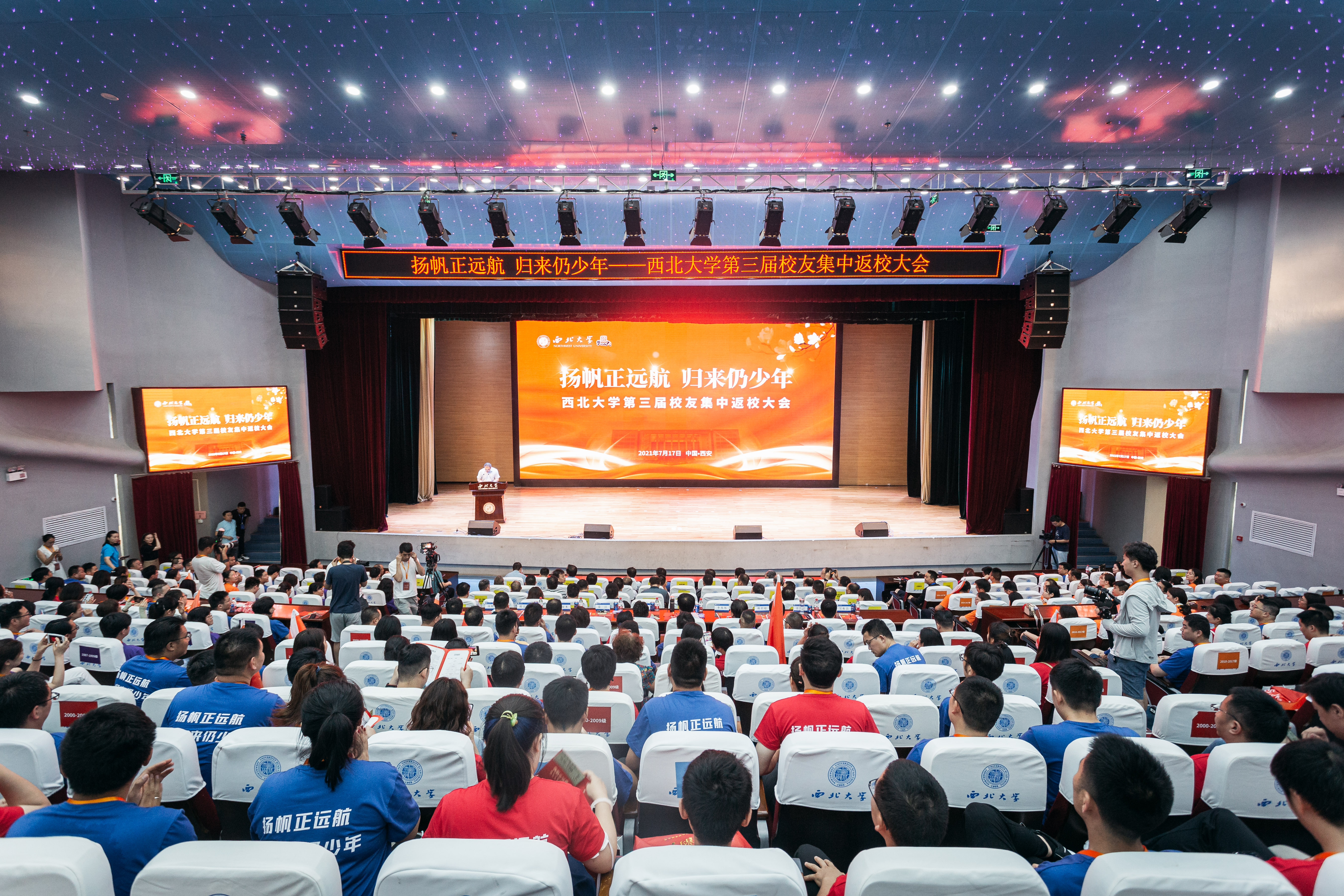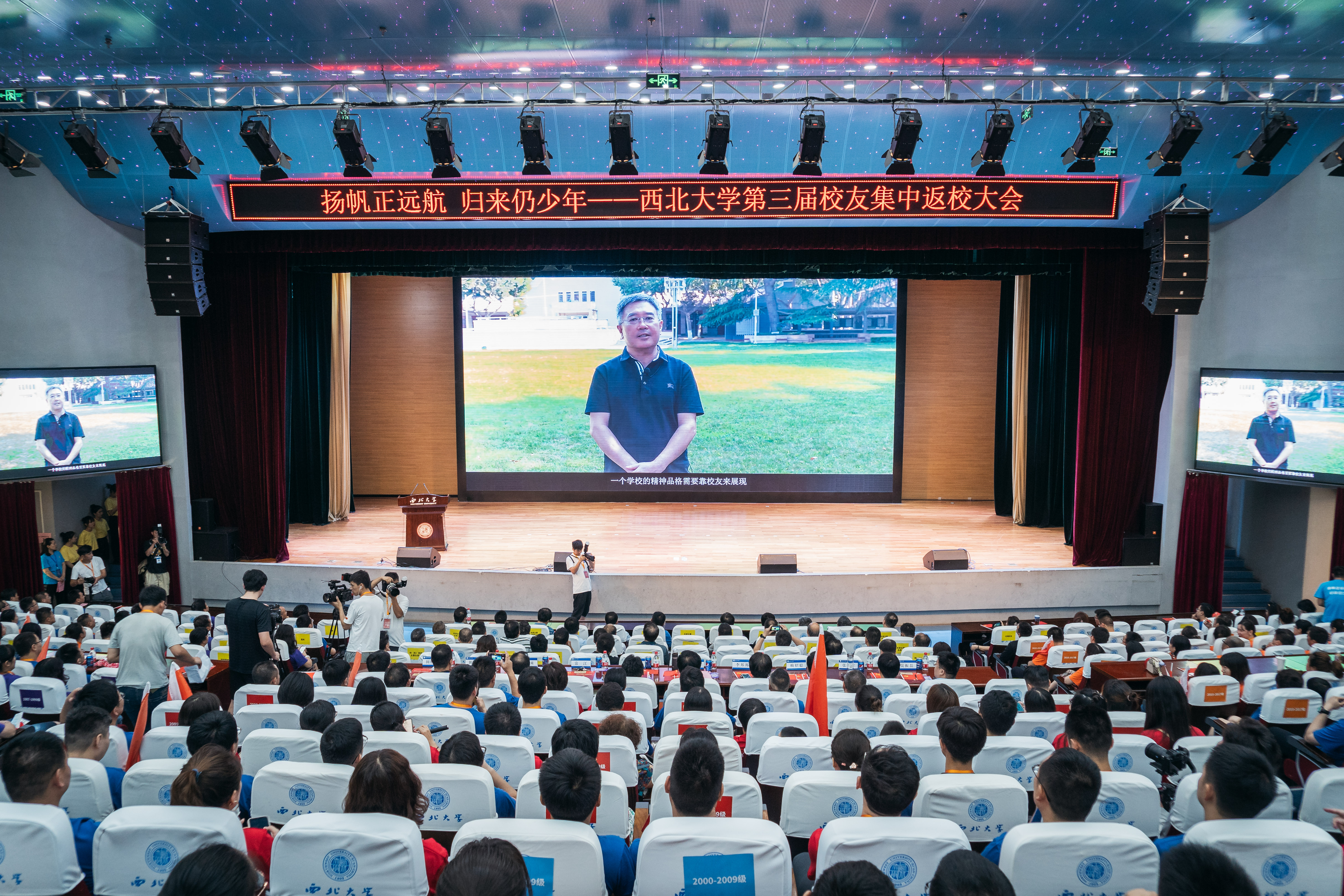 上午,返校大会在长安校区学生活动中心报告厅举行,校党委书记王亚杰,校党委副书记赵作纽,校党委副书记、纪委书记,省监委驻校监察专员李邦邦,校党委常委、副校长赖绍聪、奚家米、张远军、陈富林、吴振磊,校党委常委、宣传部部长田明纲出席大会。校内各单位、各院(系)负责人、各年级返校校友,师生代表以及社会各界人士代表共500余人参加了大会。大会由校党委常委、副校长常江主持。