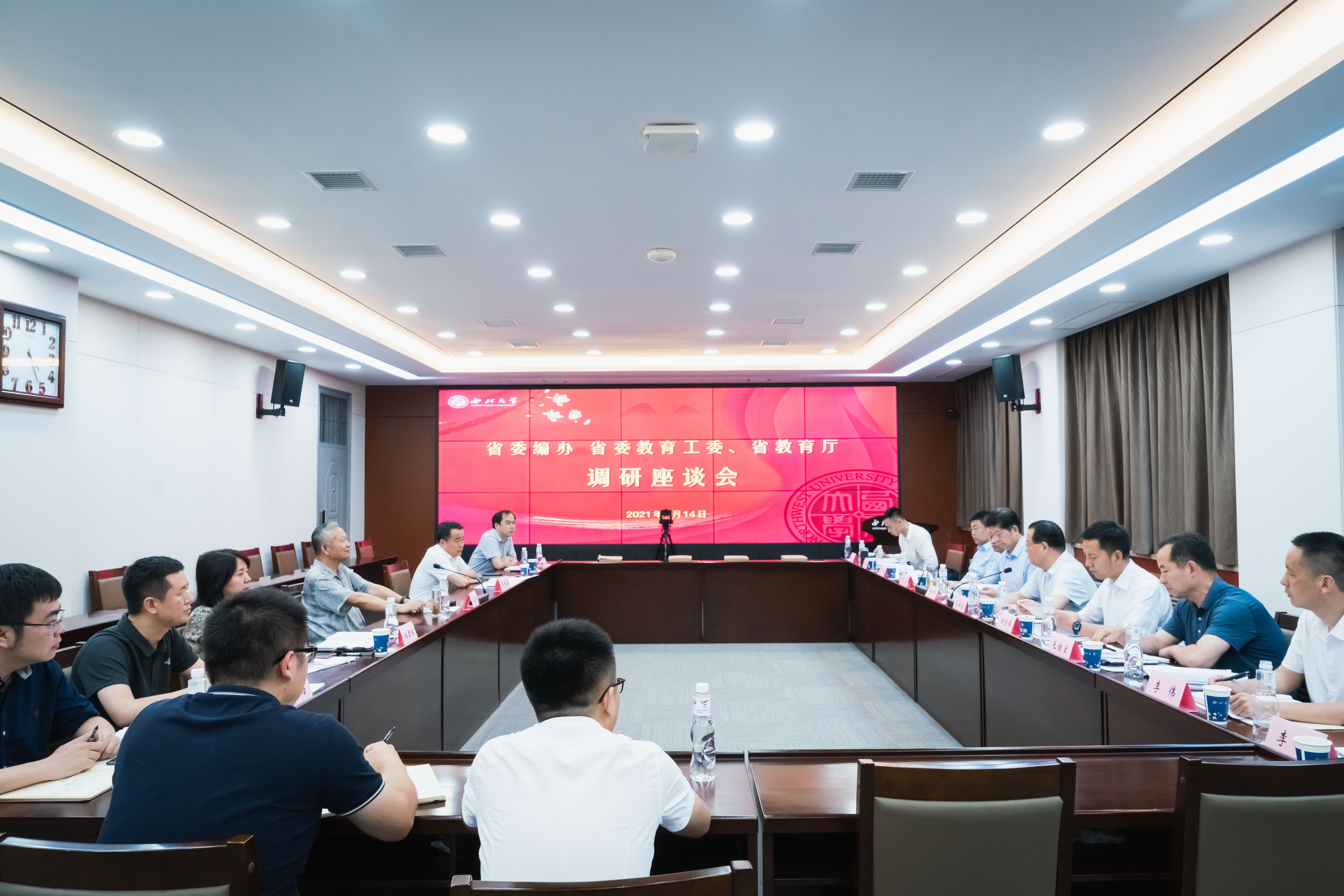 14日下午,省委编办,省委教育工委、省教育厅调研组来乐鱼网页版页面登录就机构编制工作有关情况进行调研。调研组由省委编办副主任缪金华,省委教育工委委员、省教育厅副厅长王海波及省委编办、省委教育工委、省教育厅相关部门负责人组成,调研座谈会由王海波主持。乐鱼网页版页面登录党委常委、副校长王正斌和学校相关职能部门负责人参加。
