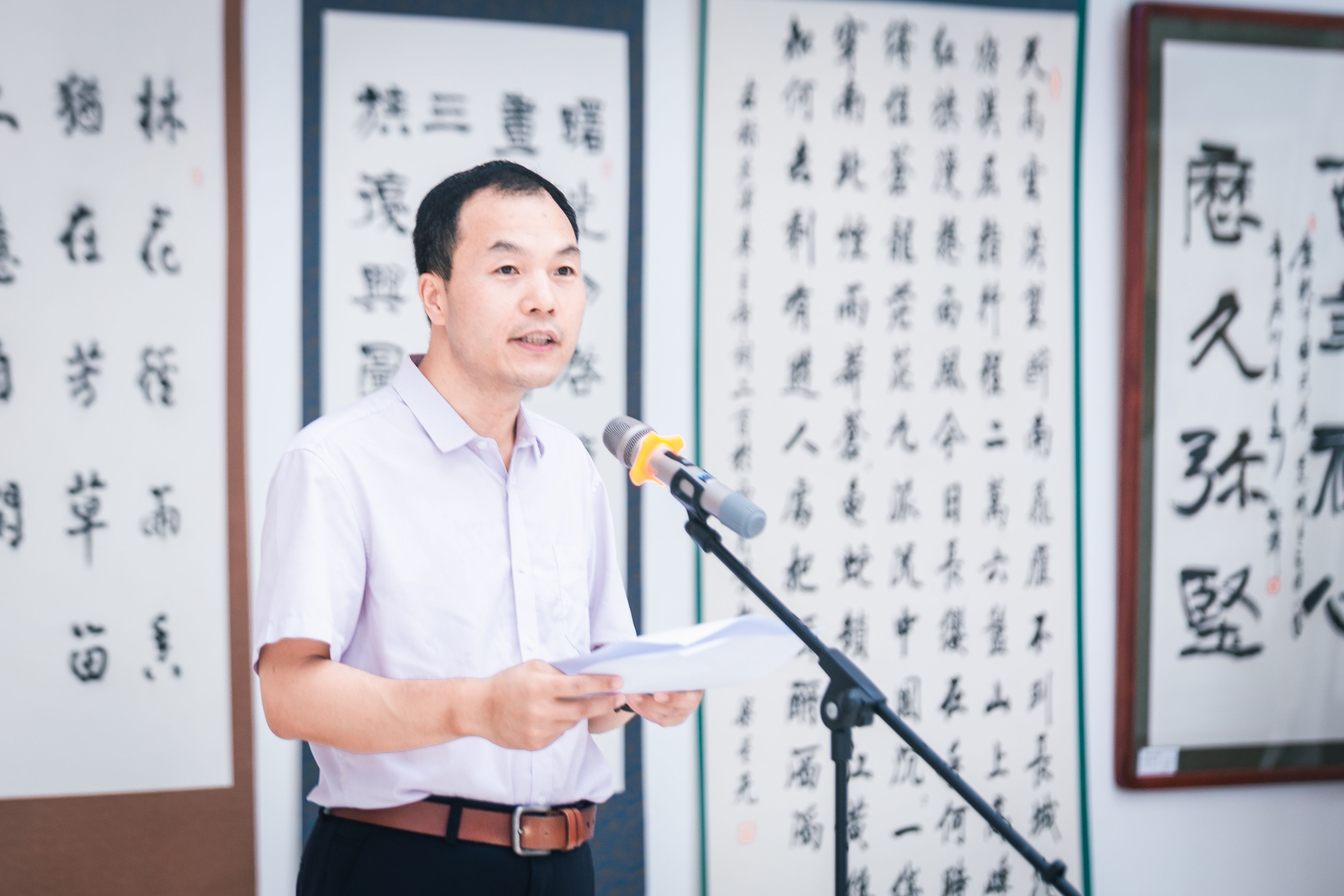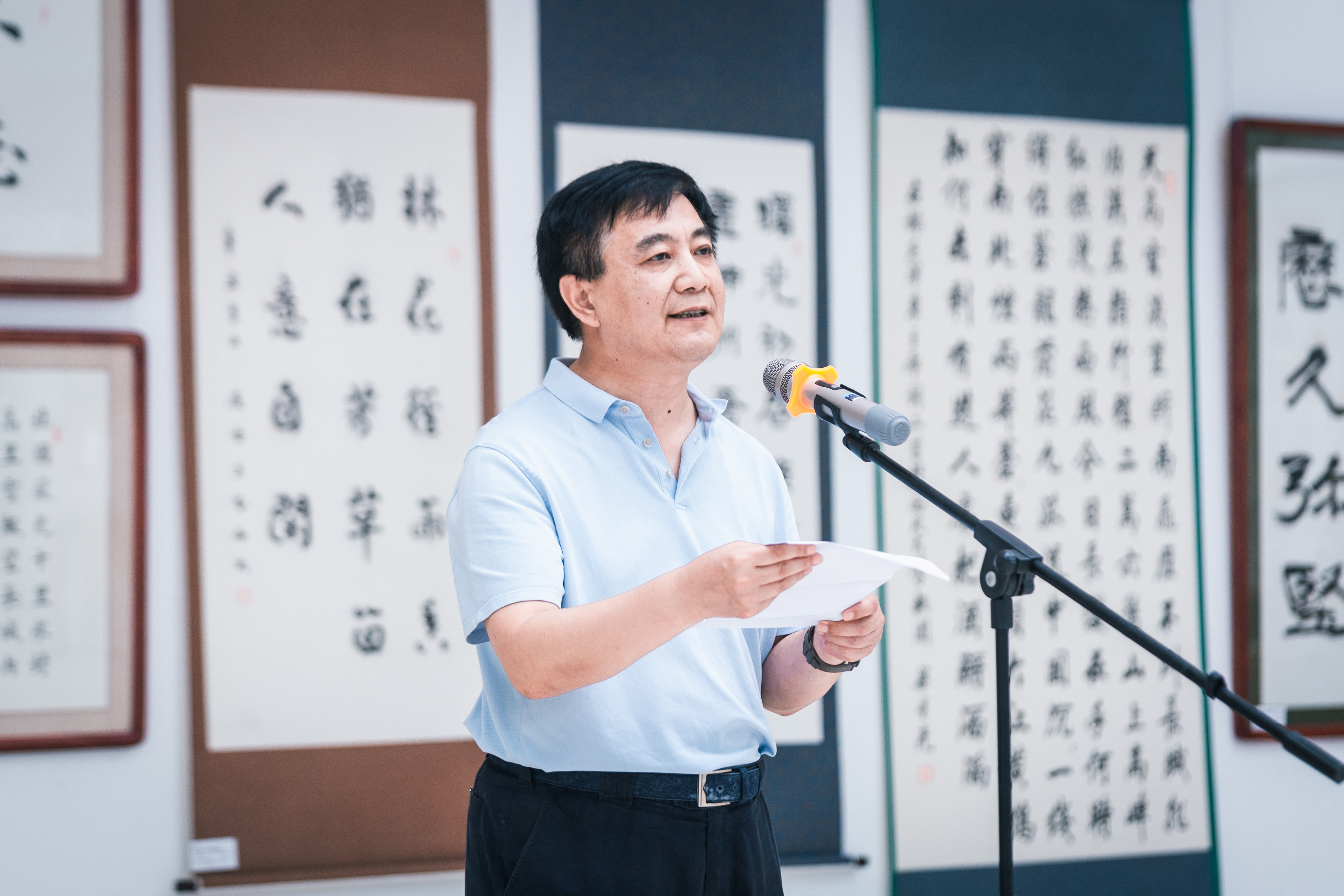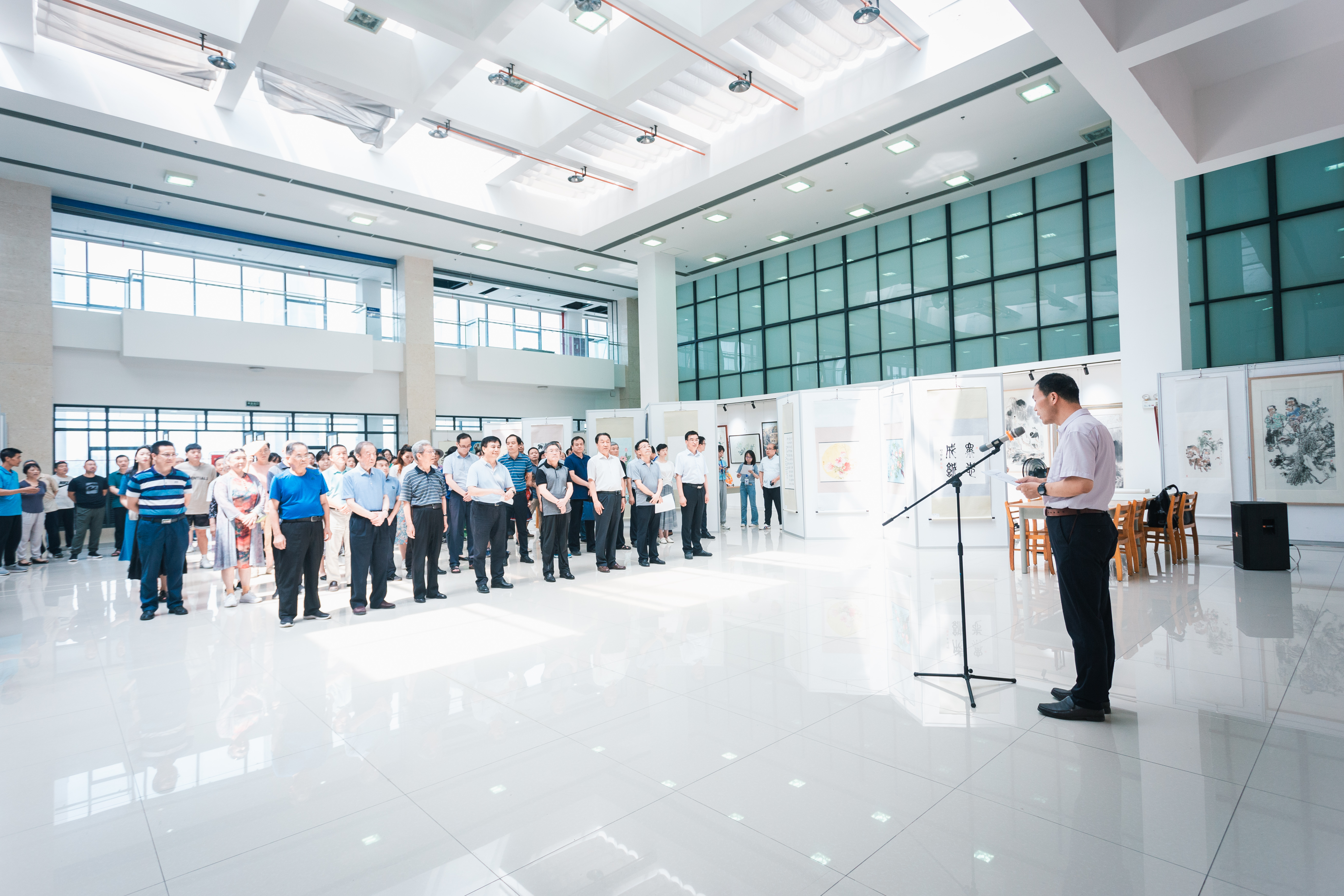 王亚杰在讲话中向热情参与展览筹备的单位和个人表示敬意。他指出,本次参展作品以“永远跟党走”为主题,用不同方式、从不同角度讴歌了党的丰功伟绩,抒发了爱党、爱国、爱社会主义的深情厚意,展现了全校师生积极向上、砥砺奋进的精神风貌,具有很强的教育意义、纪念意义。他希望全校广大师生,以明德引领价值风尚,通过有筋骨、有道德、有温度的文艺作品,书写和记录人民的伟大实践、时代的进步要求,彰显信仰之美、崇高之美,弘扬中国精神、凝聚中国力量。以美育造就国之英才,把社会主义核心价值观生动活泼、活灵活现地体现在文艺创作之中,用栩栩如生的作品让灵魂经受洗礼,做到春风化雨、润物无声。以精品繁荣大学文化,不断提高学养、涵养、修养,加强思想积累、知识储备、文化修养、艺术训练,使学校真正成为传承文化、传播文明、传扬风尚的高地。