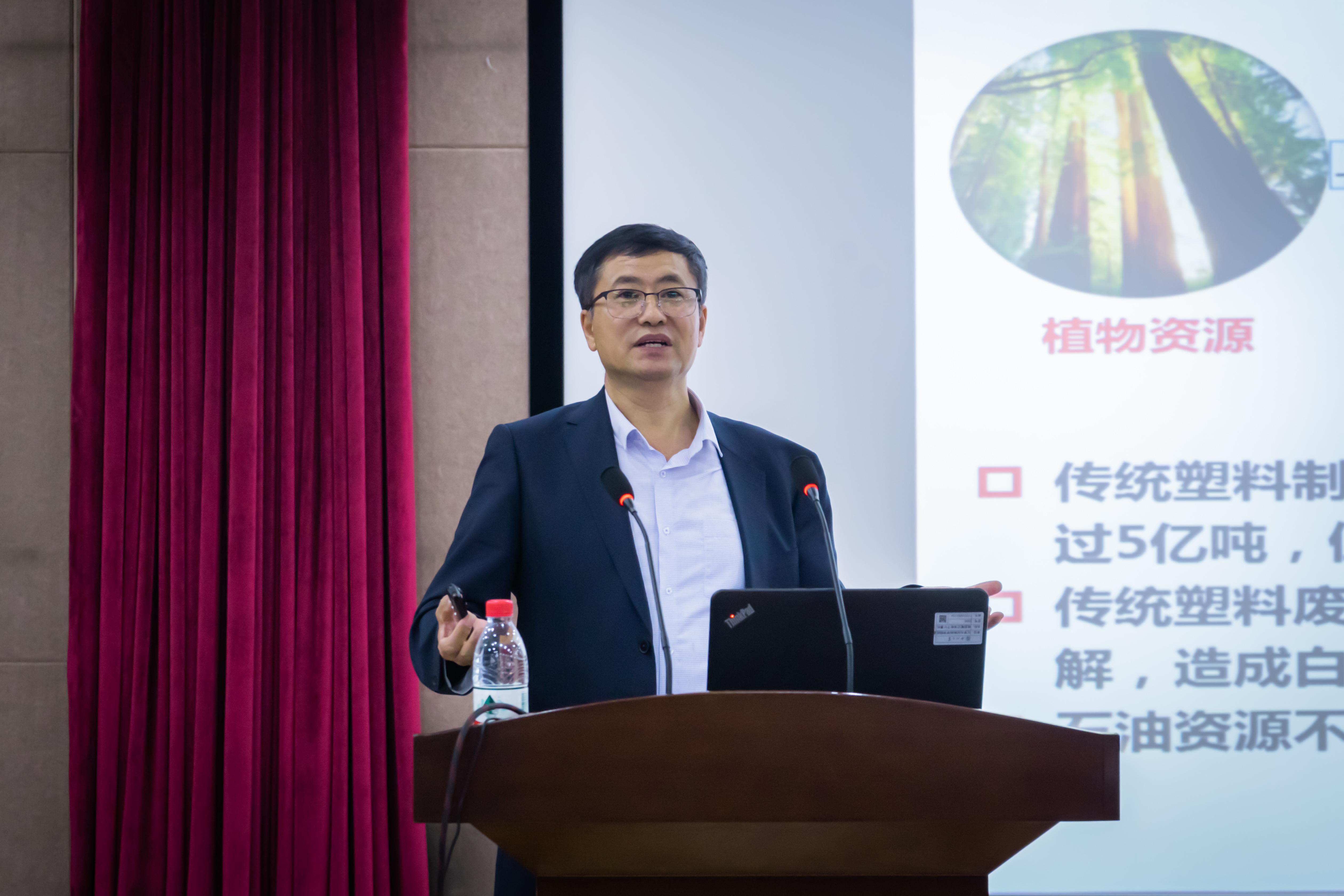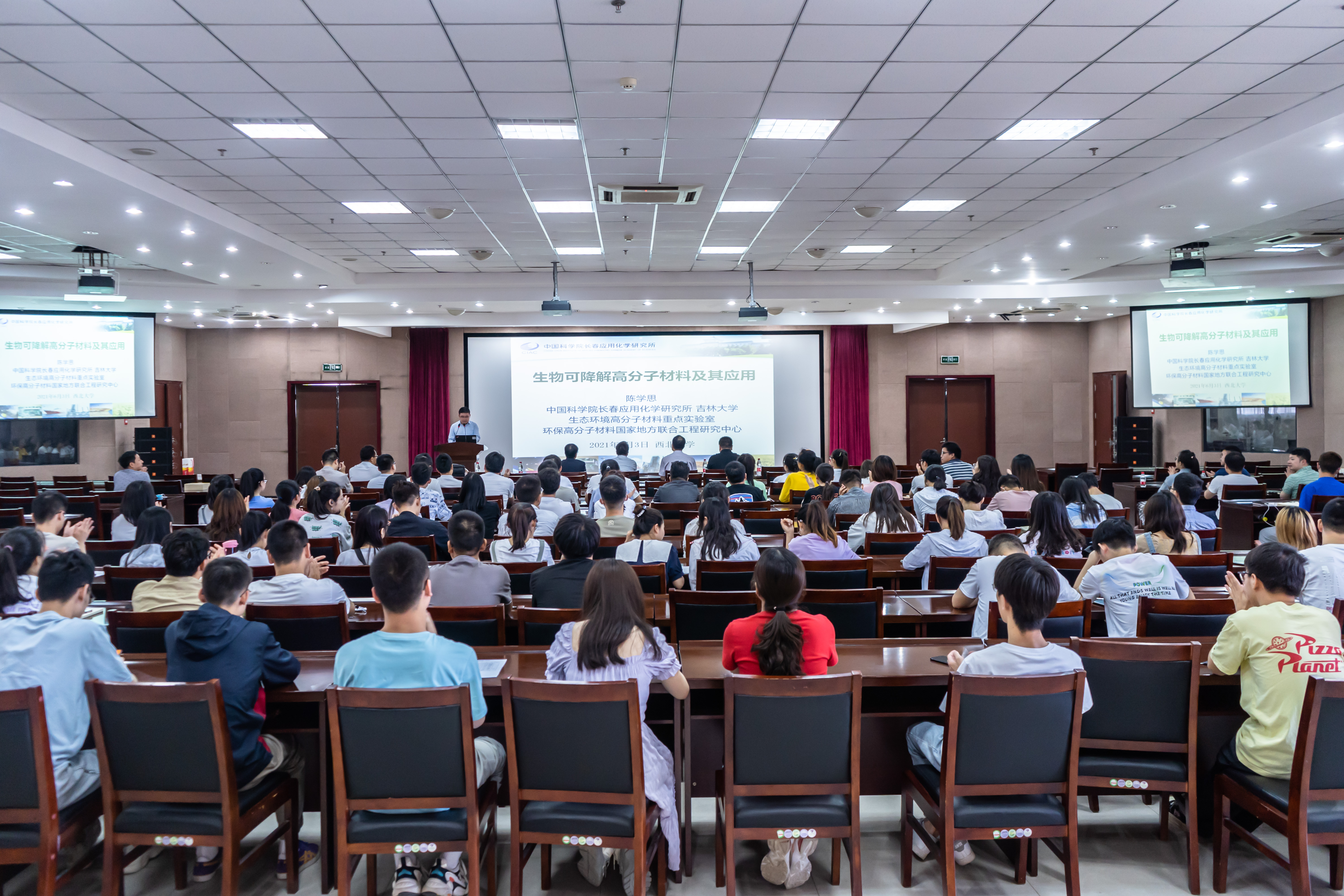 陈学思院士的研究工作涵盖基础研究、应用研究及产品开发。他的报告以生物可降解高分子材料及其应用为主题,介绍了生物可降解塑料——绿色塑料、聚乳酸、聚氨基酸的合成和生产工艺在工业、农业及日常消费品中的应用及相关产品。他重点阐述了其环保特性、与现有非可降解塑料相比的优越性,以及在高端医疗、纳米药物等方面的研究和应用前景。(图/孙圣杰 语音播报/王旭阳)