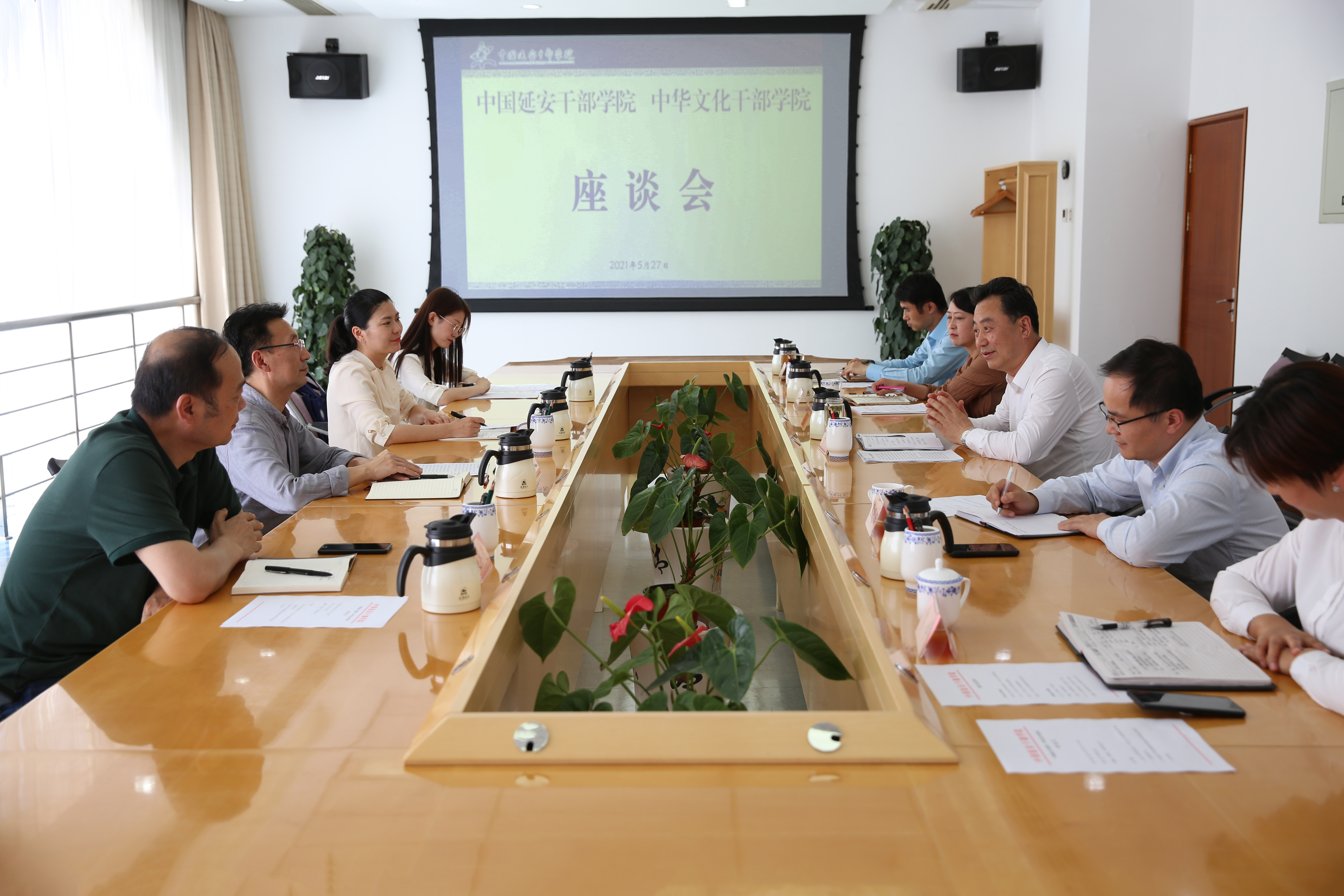 座谈会上,赵作纽介绍了调研的目的和内容,回顾了中华文化干部学院建院两年多以来,在干部教育培训专题打造、课程开发、学术研究、社会服务等方面的建设进展。他表示,中国延安干部学院作为国家级干部培训院校,开办以来形成了自身独有的办学特色和品牌,所取得的宝贵教学培训经验和做法,为全国干部学院提供了很好的借鉴。他希望进一步加强双方的交流与合作,推动中华文化干部学院办学水平提升。