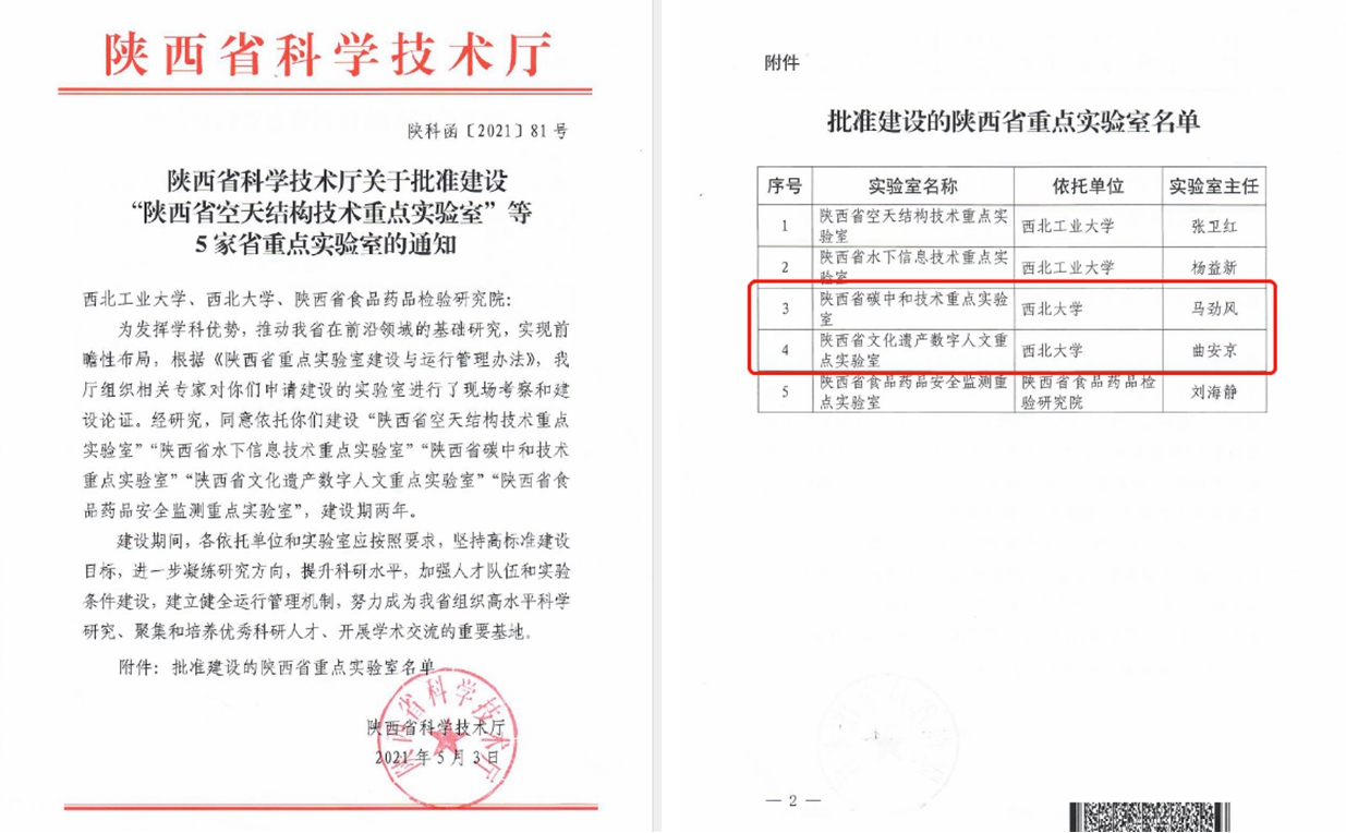近日,陕西省科技厅下发了《陕西省科技厅关于批准建设“陕西省空天结构技术重点实验室”等5家省重点实验室的通知》,乐鱼网页版页面登录获批建设陕西省碳中和技术重点实验室和陕西省文化遗产数字人文重点实验室。截至目前,学校现有陕西省重点实验室15个,标志着乐鱼网页版页面登录交叉研究科技创新基地的培育建设取得新突破。