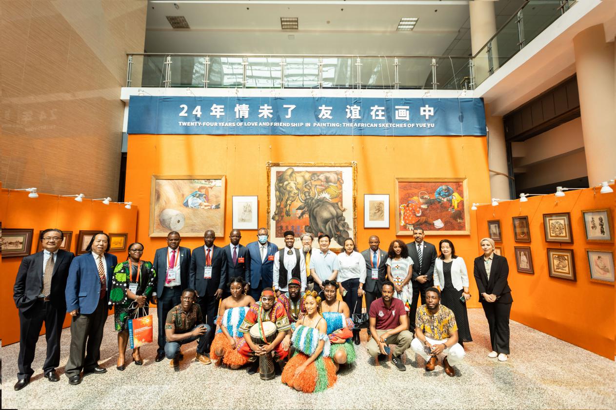 座谈会前,非洲使节一行参观了乐鱼网页版页面登录岳钰教授“24年情未了 友谊在画中”非洲写生作品展,并观看了非洲留学生代表表演的民族舞蹈。(图/高玉涛 语音播报/张一诺)