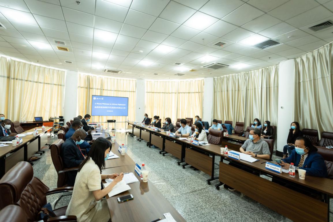 5月12日,布基纳法索驻华大使阿达马·孔波雷、多哥驻华使馆驻华大使耐希当·阿比纳、埃塞俄比亚驻华使馆公使盖布鲁•阿莱穆、加纳驻华使馆公使衔参赞弗朗西斯·奥博库、赞比亚驻华使馆一等秘书乔拉·穆松达等一行八人来乐鱼网页版页面登录访问。省委教育工委、省教育厅二级巡视员关荷,校党委书记王亚杰出席座谈会。赞比亚大学“一带一路”联合研究中心和乐鱼网页版页面登录党委办公室、校长办公室、国际合作部(国际教育学院)、博物馆、宗教造型艺术研究所、非洲研究中心、生命科学学院等单位负责人参与座谈。