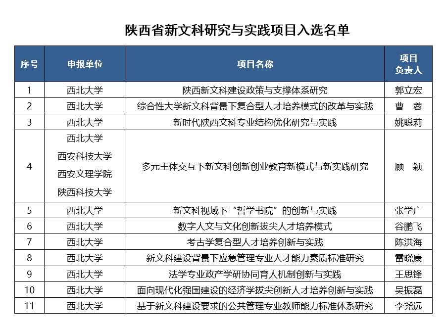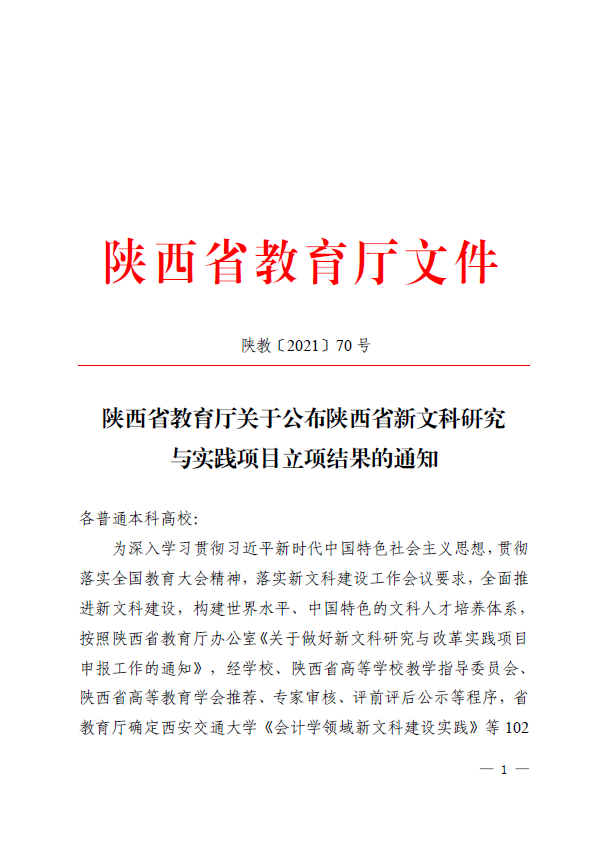 近日,陕西省教育厅公布省级新文科研究与实践项目名单,乐鱼网页版页面登录《陕西新文科建设政策与支撑体系研究》等11个项目入选,获批数量居全省首位。
