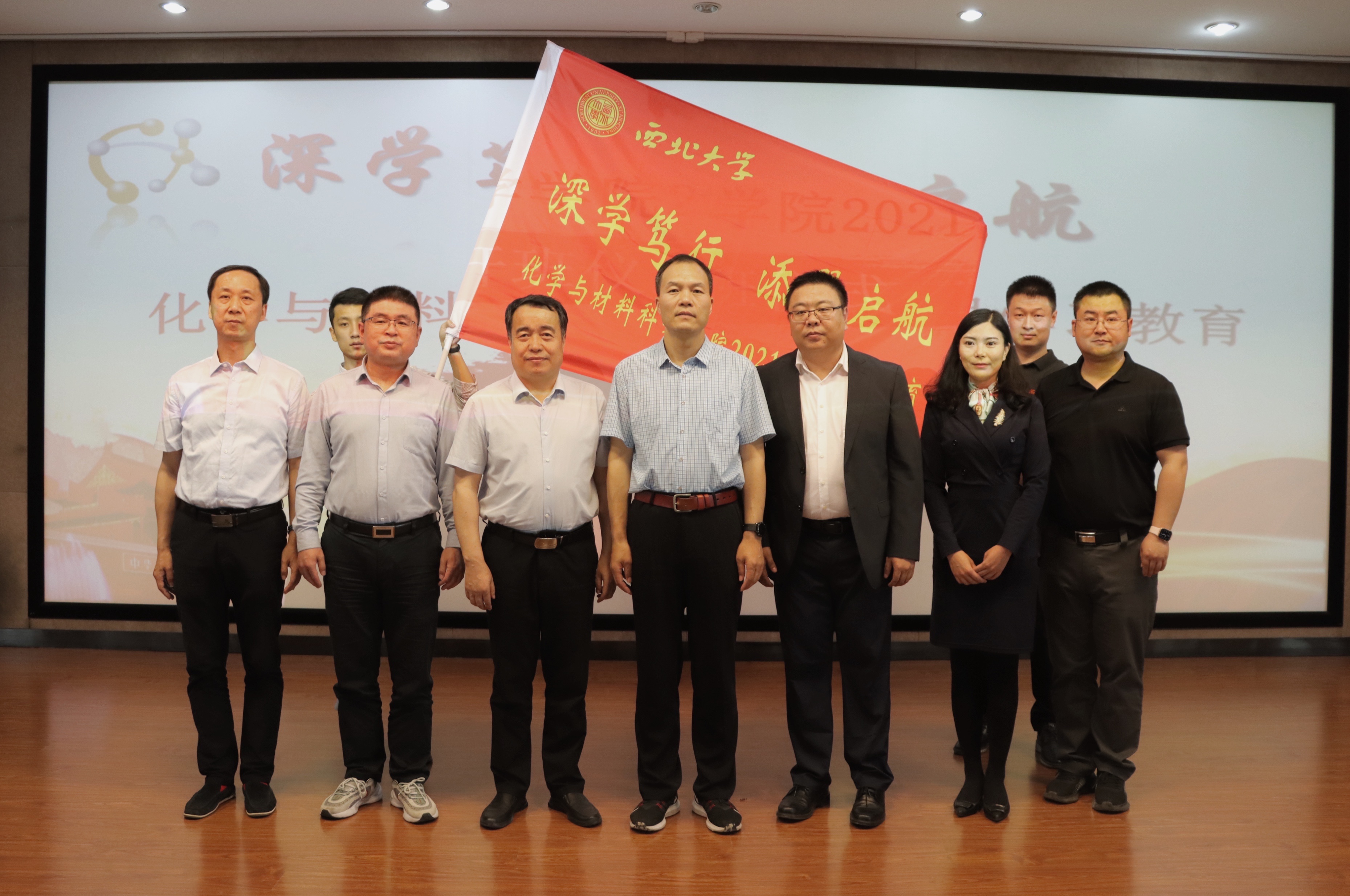 为庆祝中国共产党成立100周年,积极响应党中央关于广泛开展党史学习教育的号召,结合党建“双创”和工作实际,创新学习模式,化学与材料科学学院与中华文化干部学院联合推出“深学笃行 添翼启航”学习教育专题培训。5月12日,“深学笃行 添翼启航”学习教育开班仪式顺利举行。校党委副书记吕建荣,党委组织部、中华文化干部学院等单位负责人,化材学院党政班子成员、党委委员、各教工支部委员、全体学生党员和入党积极分子共同参加了开班仪式。
