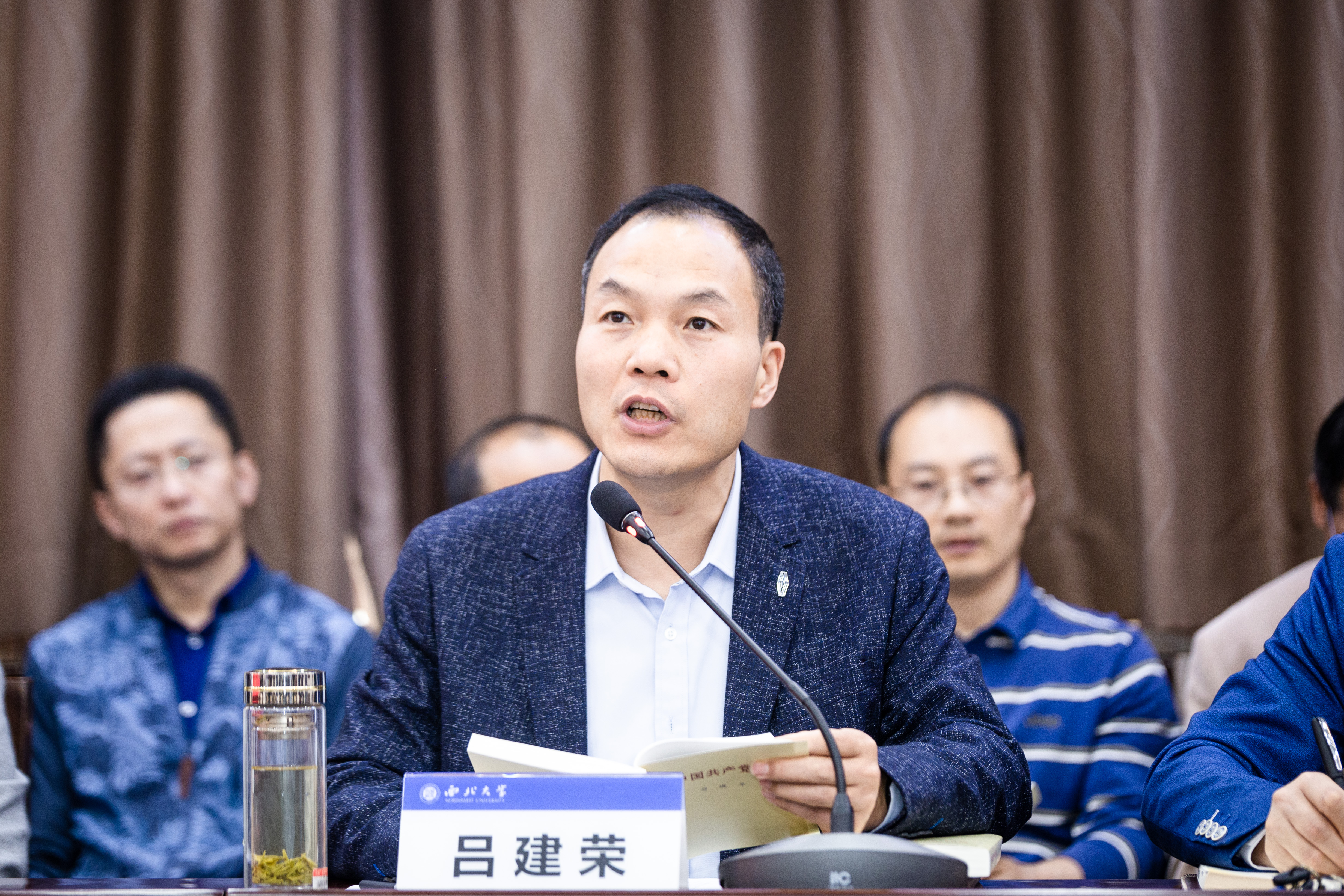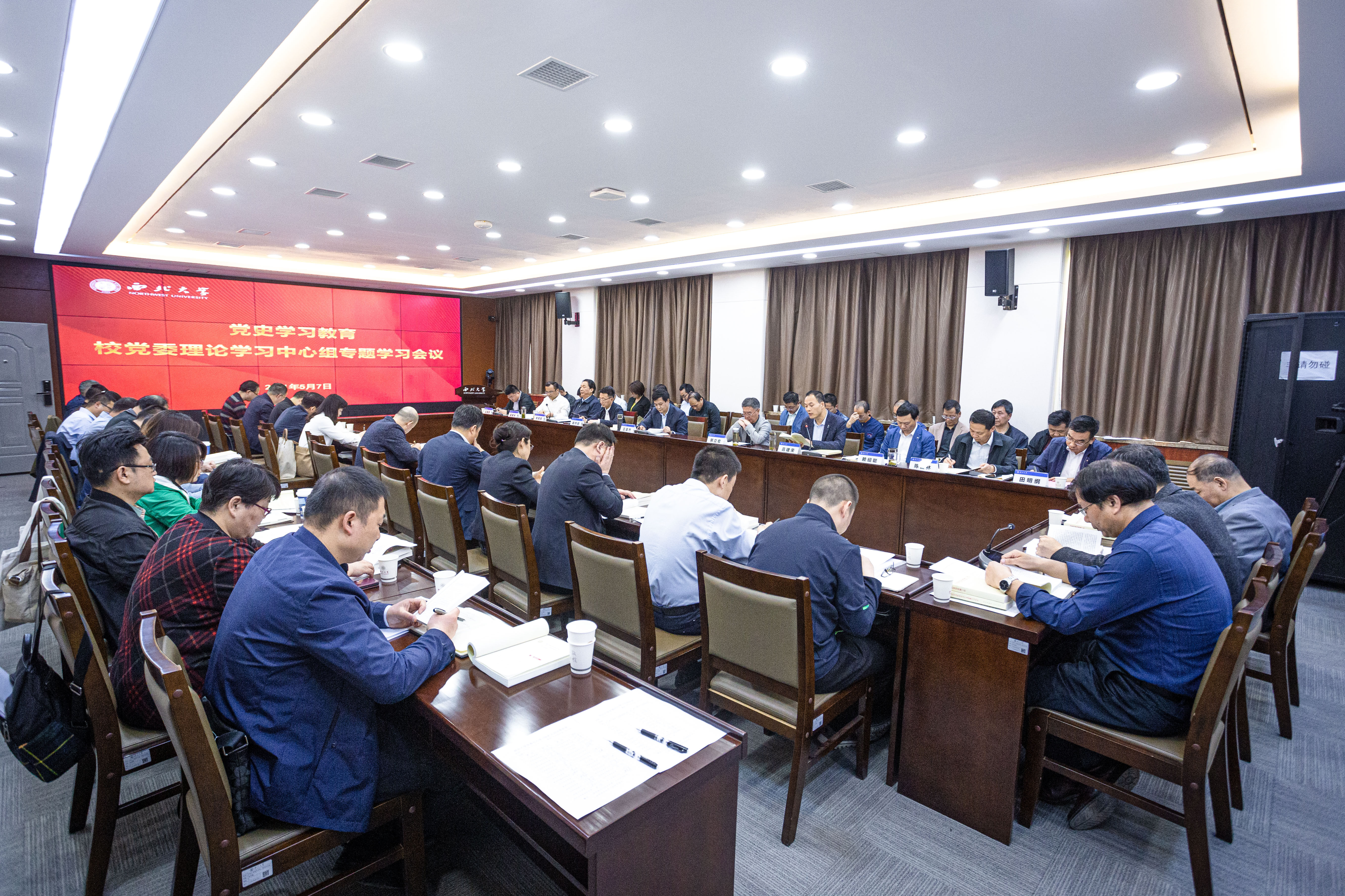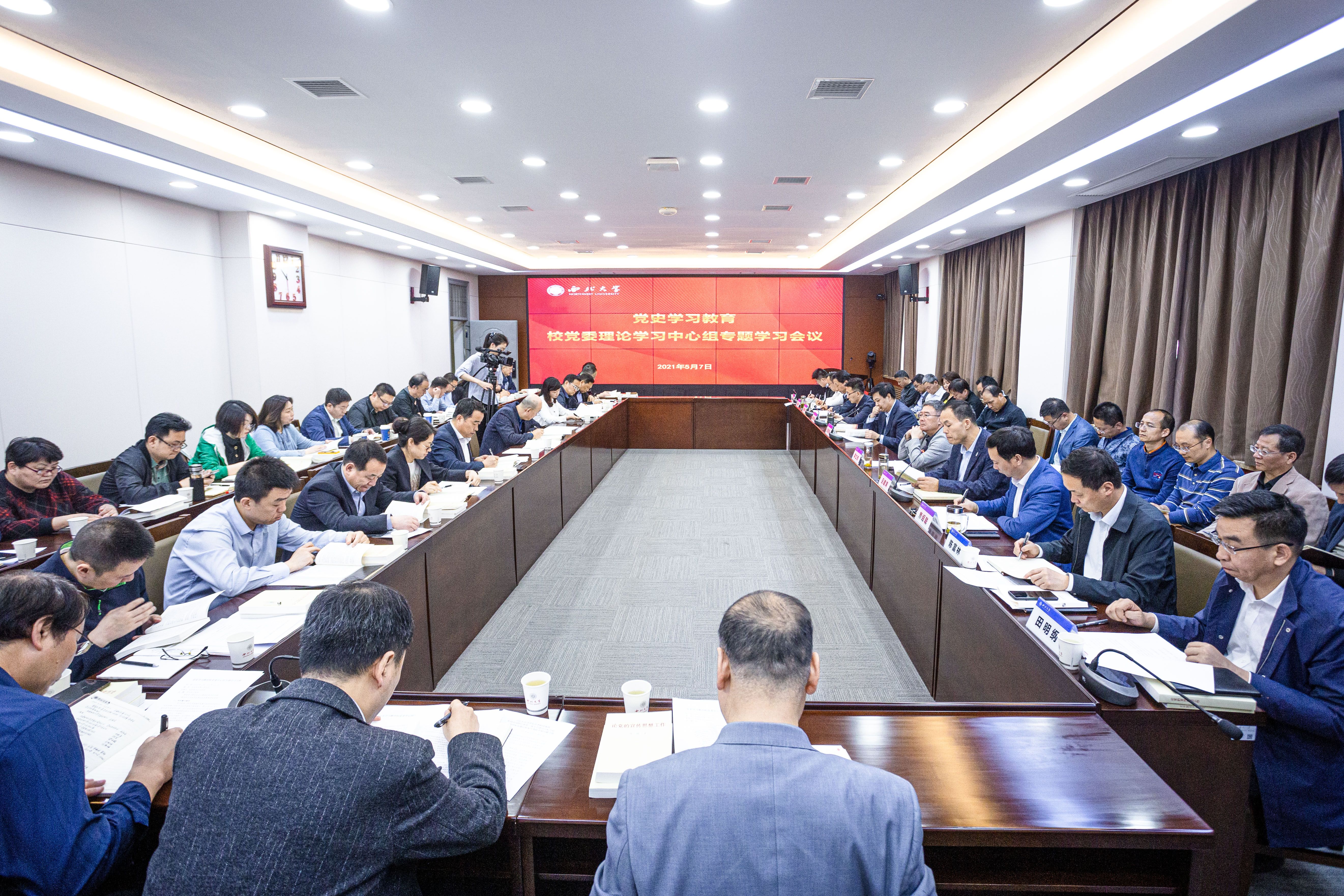 会上,校党委副书记吕建荣领学了习近平《论中国共产党历史》中的《学习党史、国史是坚持和发展中国特色社会主义的必修课》和《习近平新时代中国特色社会主义思想学习问答》中的《我们党作为百年大党,为什么必须始终牢记初心和使命?》。校党委副书记、纪委书记、陕西省监察委员会驻校监察专员李邦邦领学了习近平《论党的宣传思想工作》中的《意识形态关乎旗帜、关乎道路、关乎国家政治安全》和习近平总书记在清华大学考察时的重要讲话精神。校党委常委、宣传部部长田明纲传达了省委党史学习教育第十二巡回指导组有关会议精神。赵作纽、吴振磊、王康、惠正强、郝团虎等5位中心组成员分别立足思想和工作实际,作了交流发言。