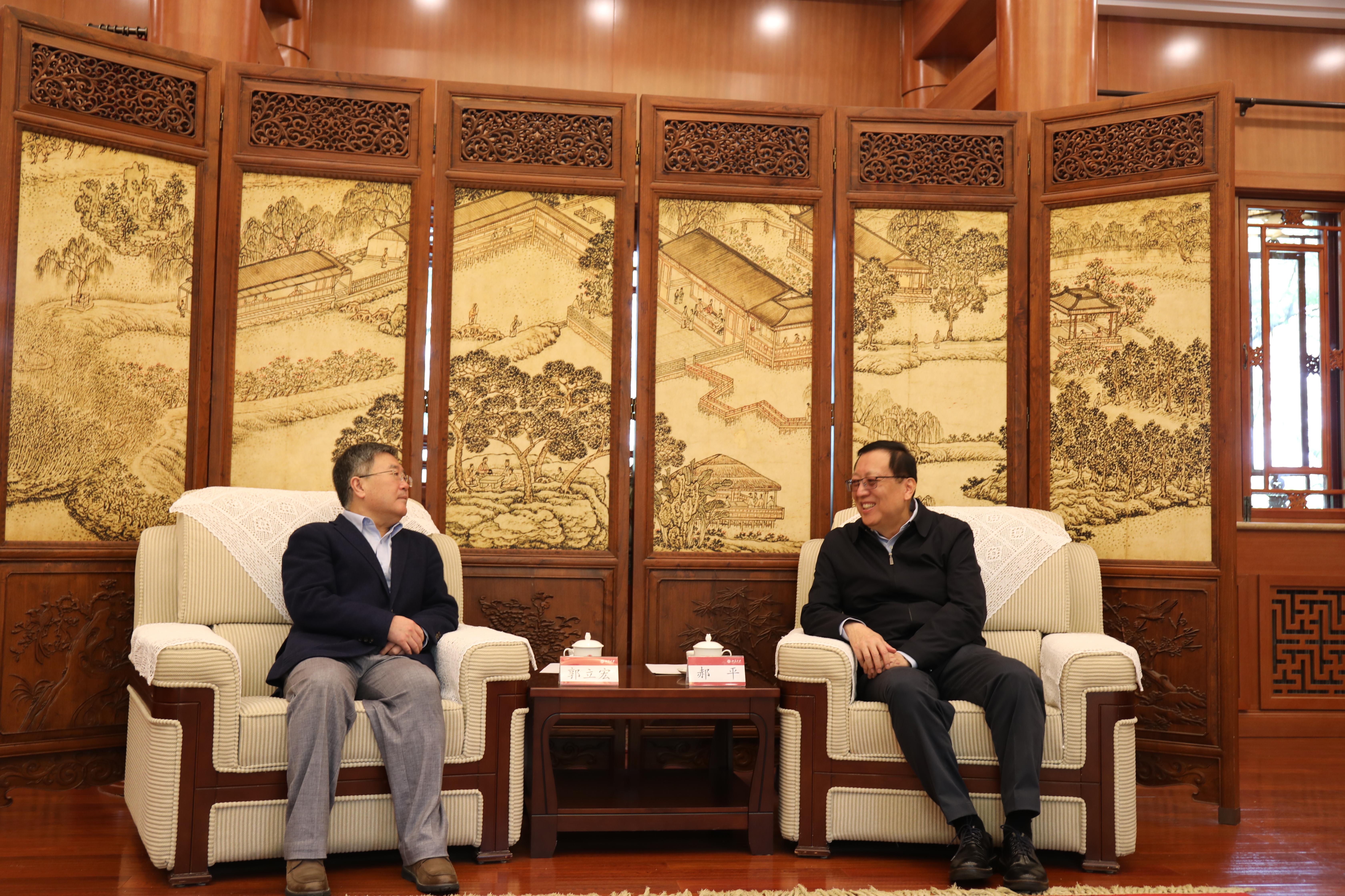 北京大学校长郝平、乐鱼网页版页面登录校长郭立宏出席活动
