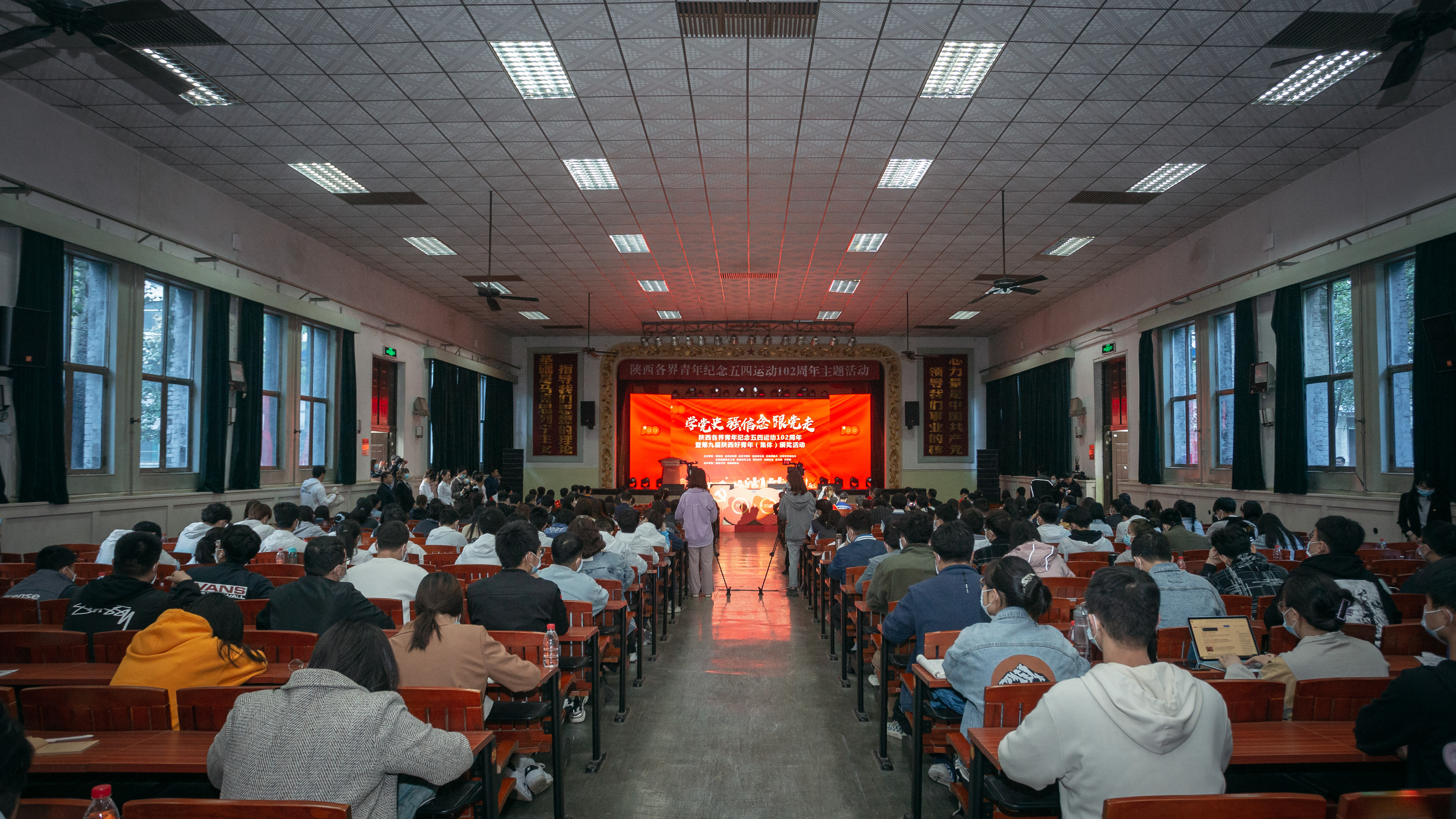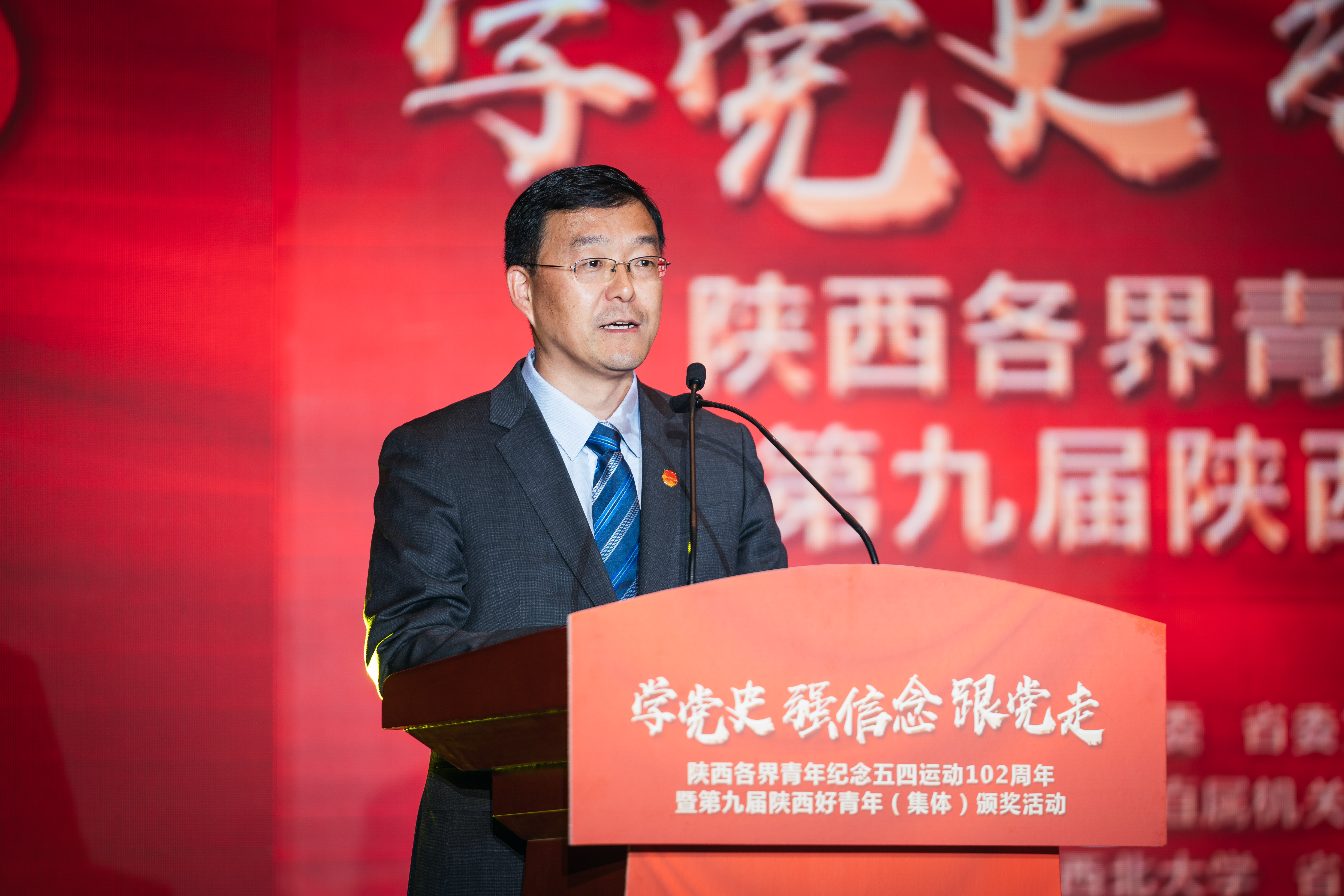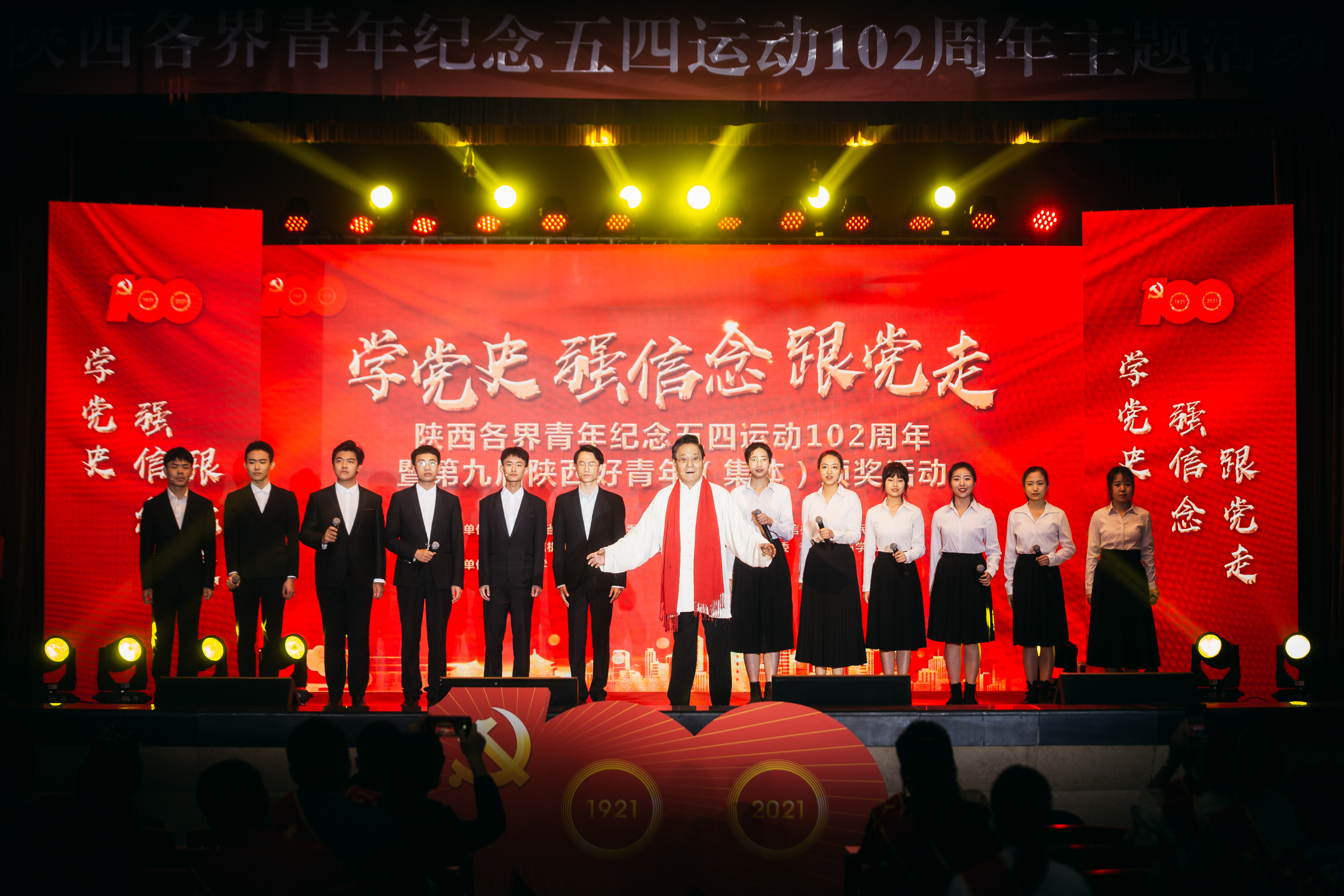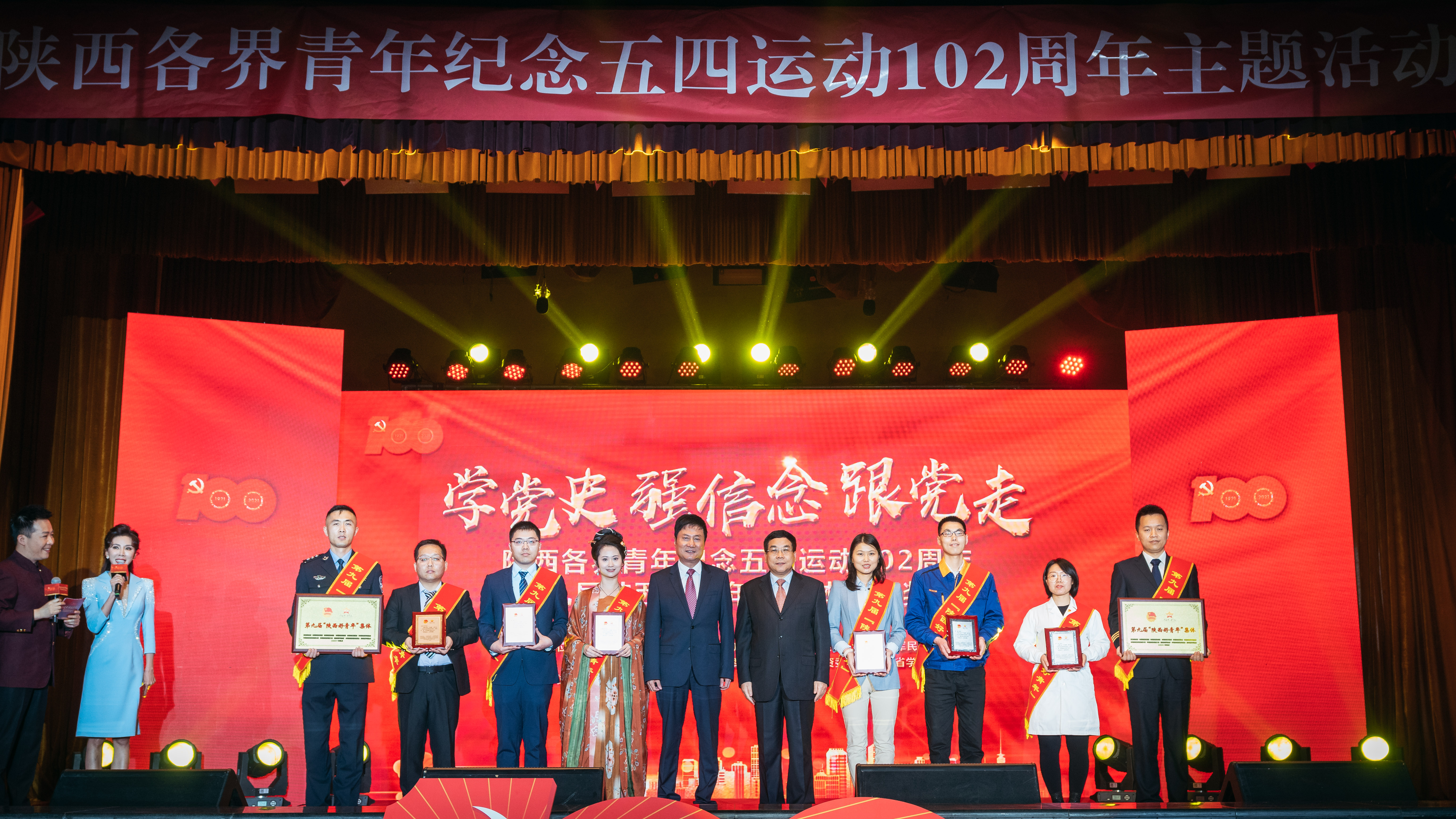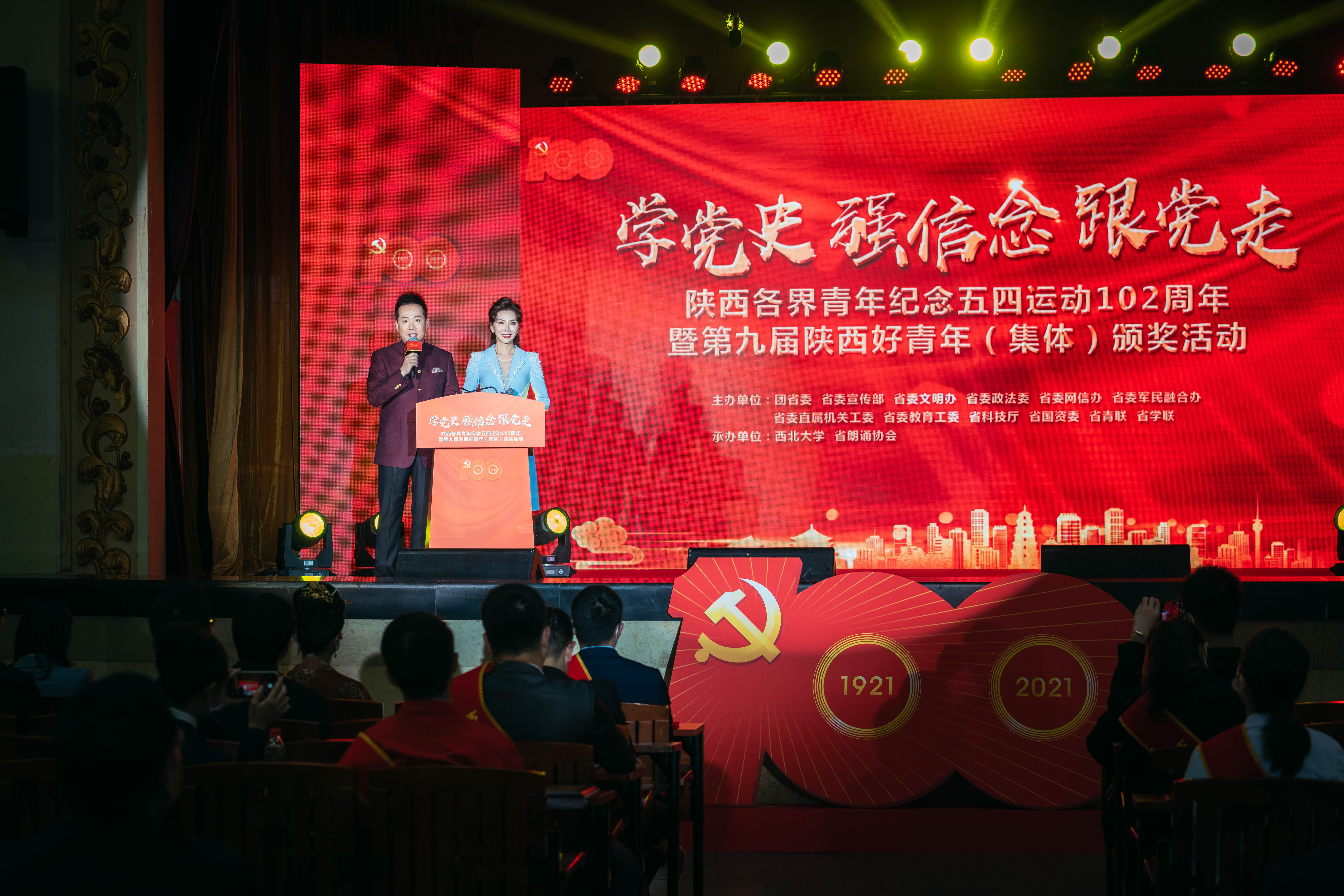 为庆祝中国共产党成立100周年、五四运动102周年,教育引领广大团员青年,重温党史、坚守初心、砥砺奋斗,争做堪当大任的时代新人,4月26日,团省委联合省委宣传部、省委文明办、省委政法委等多家单位举办的“学党史、强信念、跟党走”陕西青年纪念五四运动102周年主题活动暨第九届陕西好青年(集体)颁奖活动在乐鱼网页版页面登录太白校区大礼堂举行。省人大常委会副主任、省总工会主席郭大为,省政协副主席杨冠军出席活动。校党委书记王亚杰、党委副书记吕建荣陪同参加。省级相关部门领导、省青联委员代表、省朗诵协会艺术家、第九届陕西好青年(集体)获奖代表、乐鱼网页版页面登录学生代表等280人参加了活动。