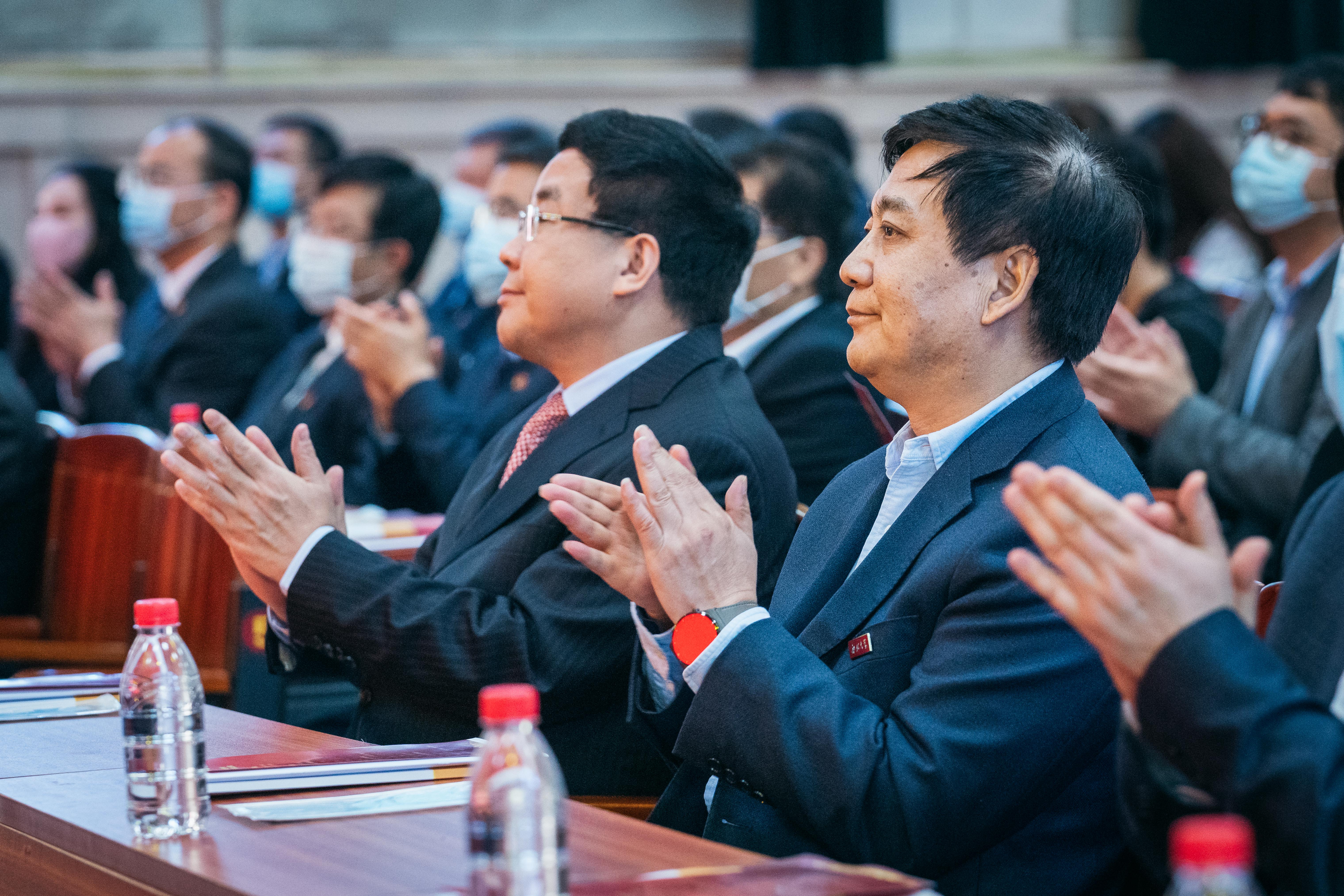 省人大常委会副主任、省总工会主席郭大为,省政协副主席杨冠军为获奖代表颁奖