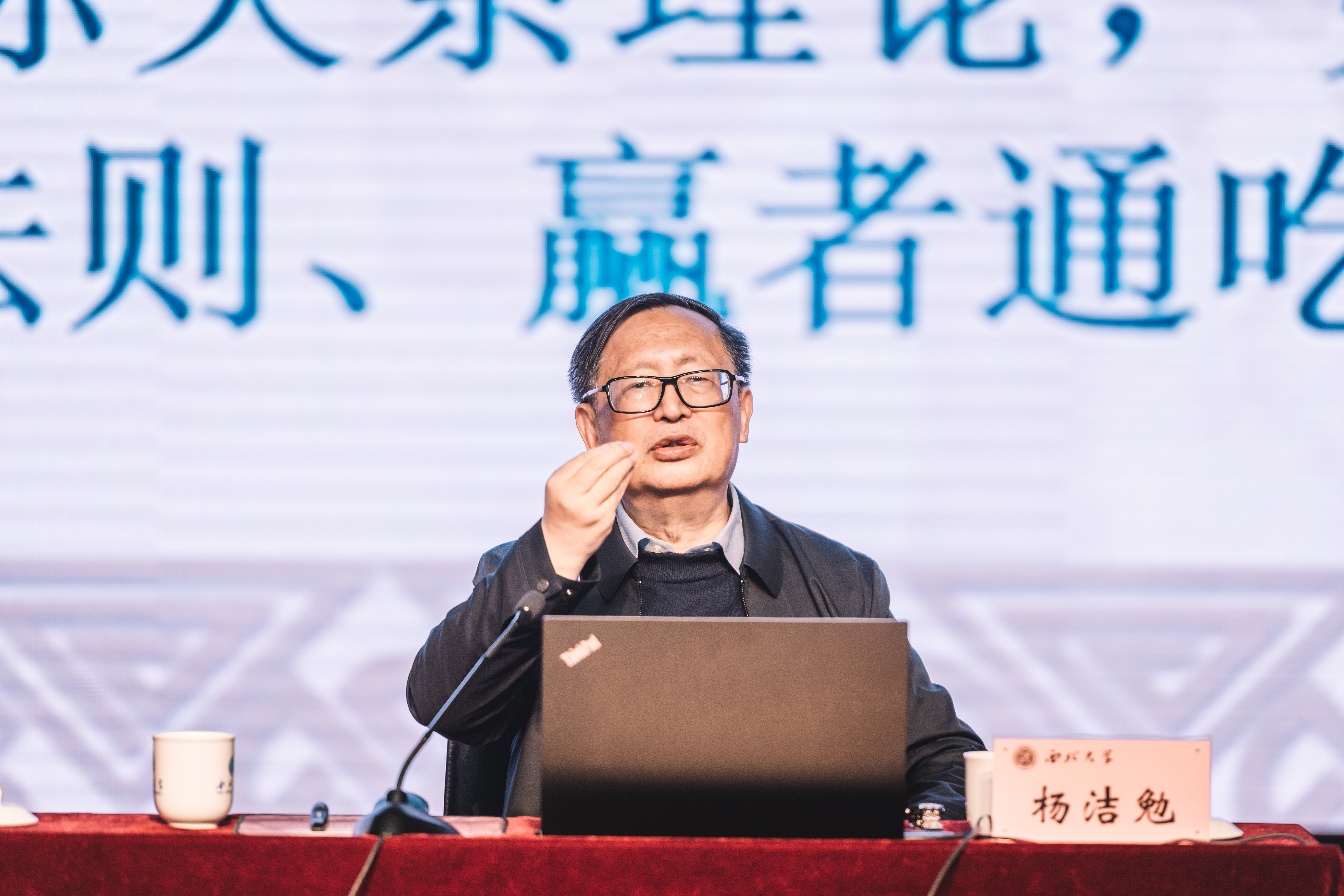 王亚杰在总结讲话中对杨洁勉表示感谢。他指出,杨洁勉系统回顾了中国共产党建党百年来对于外交理论的探索轨迹,全面总结了不同时代中国共产党外交理论和实践的特征,为师生打开了一扇认识世界的窗口。他强调,中国正在走向世界舞台的中央,每一位同学都是中国形象的代表,都是中华民族伟大复兴的见证者和参与者,要深入思考世界形势国家发展大势,在复杂的局势中保持清醒和定力、从容和自信。要增强使命感和责任感,努力提高本领,为中华民族伟大复兴贡献力量。(图/ 马骞 王鹏威 语音播报/闫帅行)