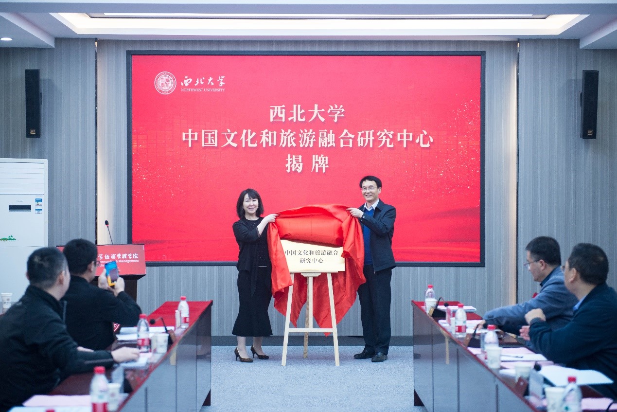 4月9日,乐鱼网页版页面登录中国文化和旅游融合发展研究中心揭牌仪式暨《中国文旅融合发展蓝皮书——2020年中国文旅融合产业发展指数报告》编写研讨会在太白校区举行。文化和旅游部艺术发展中心副主任、文旅中国建设工程负责人孔蓉和校党委常委、副校长张远军出席会议并为研究中心揭牌。
