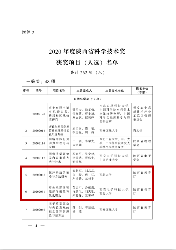 乐鱼网页版页面登录化材学院栾新军教授主持的“螺环构筑的策略与方法研究”获省自然科学奖一等奖,地质学系任战利研究员主持的“叠合盆地热演化史恢复理论创新及在油气勘探中的应用”,生命学院刘建书教授主持的“特色营养健康食品研究开发与产业化”分获省科学技术进步奖一等奖;信息学院贺小伟教授主持的“面向肿瘤早期检测的光学分子断层成像方法研究”获省自然科学奖二等奖。信息学院许鹏飞副教授参与的“彩色地形图智能解译模型和优化理论”获省自然科学奖一等奖,地质学系杨文强老师参与的“昆仑-阿尔金造山作用过程及成矿背景”获省科学技术进步奖二等奖。