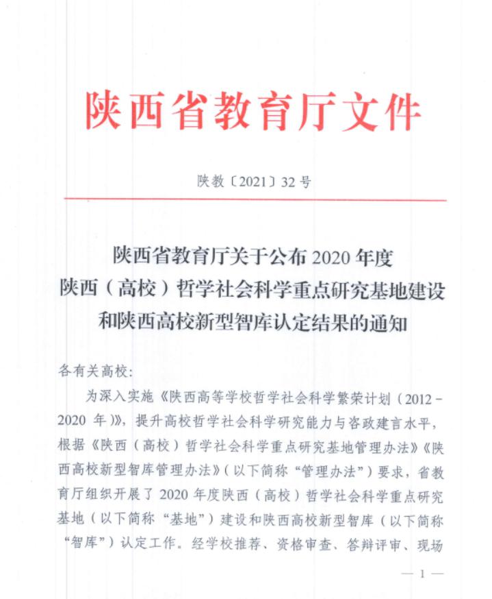 近日,陕西省教育厅公布2020年度陕西(高校)哲学社会科学重点研究基地建设名单,本年度全省共批准建设23家基地。由乐鱼网页版页面登录历史学院申报的“宋辽金史研究院”、新闻传播学院申报的“融媒体与社会治理研究中心”两所研究机构获批建设。