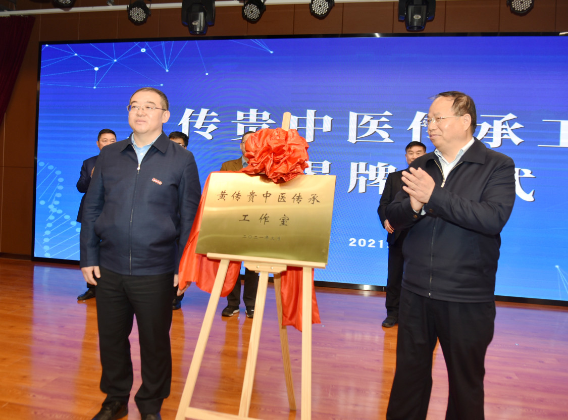 校党委常委、副校长常江,铜川市政府副市长李荣共同为黄传贵中医传承工作室揭牌