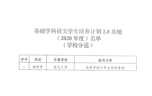 近日,教育部办公厅公布《关于印发基础学科拔尖学生培养计划2.0基地(2020年度)名单的通知》,乐鱼网页版页面登录地质学拔尖学生培养基地成功入选。