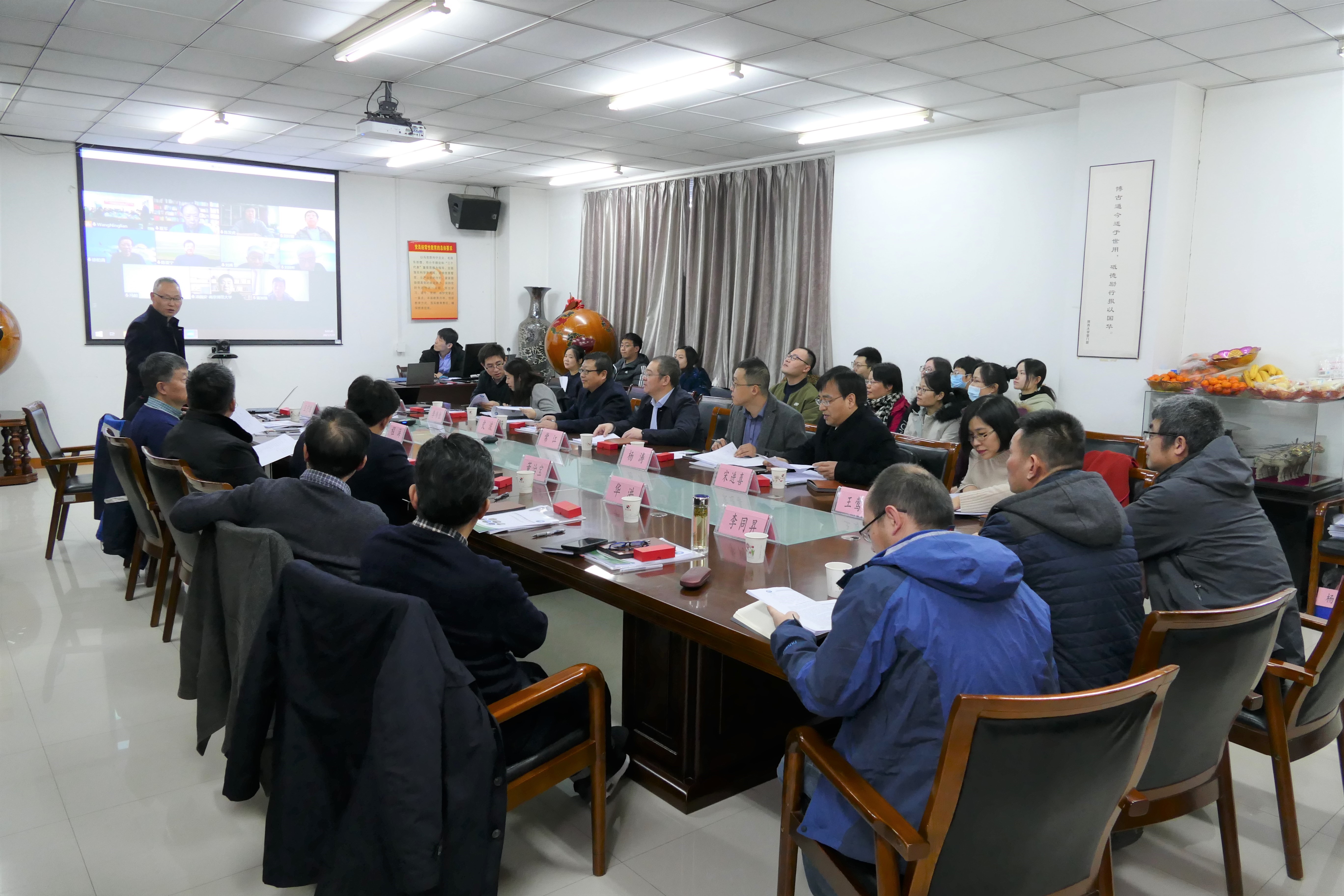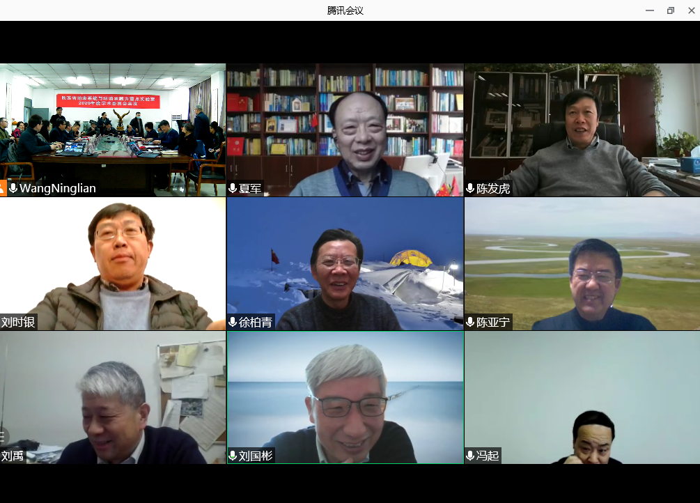 1月30日,陕西省地表系统与环境承载力重点实验室2020年度学术委员会会议在乐鱼网页版页面登录长安校区召开。学术委员会主任陈发虎院士、副主任李同昇教授和夏军院士、刘禹研究员、雷加强研究员、刘国彬研究员、李占斌教授、董治宝教授、冯起研究员、汤国安教授、王文科教授、华洪教授、刘时银教授、徐柏青研究员等14名学术委员,程海教授、陈亚宁研究员、李震研究员等3名特邀专家以及实验室全体成员参加会议。乐鱼网页版页面登录党委常委、副校长常江,科技处负责人以及城环学院党政班子全体成员出席会议。会议以线上、线下方式同步进行,分为开幕式、工作汇报、学术报告、专家咨询和讨论等环节。会议开幕式由实验室主任王宁练教授主持。实验室工作汇报、学术报告和专家咨询讨论由学术委员会主任陈发虎院士主持。