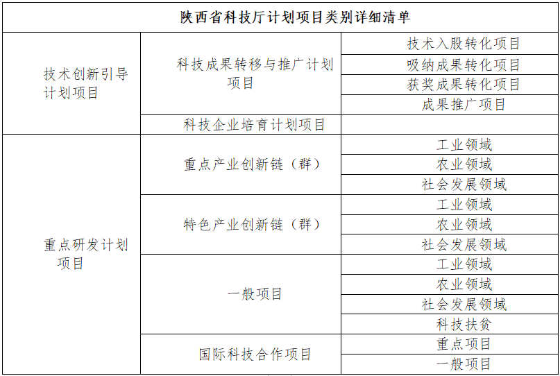 此次主要验收项目类别为已到期的各类陕西省科技计划项目(除自然科学基础研究计划项目),其详细计划类别如下: