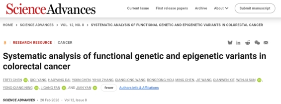 以上成果以“Systematic analysis of functional genetic and epigenetic variants in colorectal cancer”为题,于2月20日在Science Advances上发表。乐鱼网页版页面登录生命科学与医学部陈尔飞副教授是论文独立第一作者,严健教授是本文通讯作者,研究生杨淇淇、戴浩洋、陈怡欣等以及医学院部分本科生也为研究做出了重要贡献。该研究得到了国家自然科学基金项目、陕西省科技创新团队项目、深圳市医学研究基金项目、香港研究资助局和陕西省基础科学(化学与生物学)研究院经费的支持。