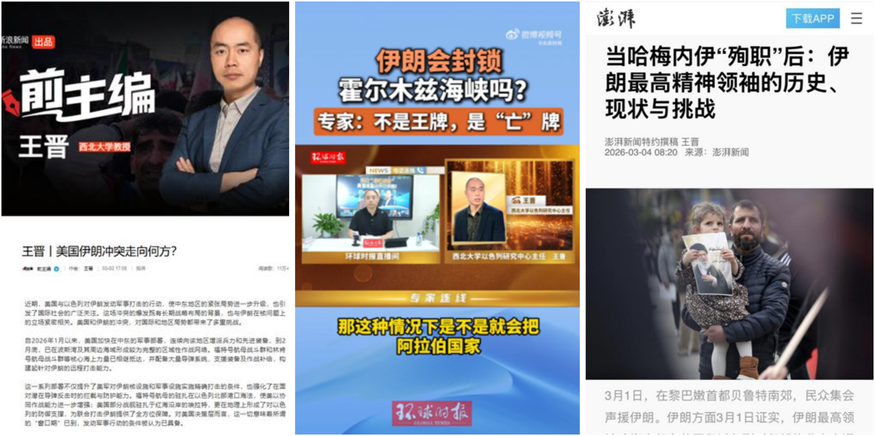 当地时间2月28日,美国和以色列对伊朗发动了大规模军事打击。3月1日,伊朗方面宣布最高领袖哈梅内伊在美以军事行动中丧生,这一被媒体称为“世纪斩首”的事件震惊世界。面对这一可能改写中东地缘政治格局的重大事件,区域国别学院副院长、中东研究所副所长、伊朗研究中心主任李福泉教授,副院长闫伟教授第一时间接受中国新闻社、《南方日报》等权威媒体专访,马韬(Matteo Capasso)教授接受CGTN采访。王晋教授在《光明日报》发表文章《美以对伊动武,中东危机加剧》,黄民兴教授在个人哔哩哔哩网站的“黄民兴聊中东”发布解读视频。博士研究生李炫璇作为特约记者在《环球时报》撰写评论文章。