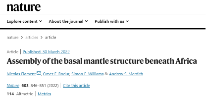 乐鱼网页版页面登录与澳大利亚、英国科研机构合作,于伦敦时间2022年3月30日在国际著名期刊Nature发表题为Assembly of the basal mantle structure beneath Africa的文章。该文章由乐鱼网页版页面登录地质学系Simon Edward Williams教授与澳大利亚卧龙岗大学Nicolas Flament博士和Ömer F. Bodur博士以及英国利兹大学Andrew S. Merdith博士合作发表,Simon Edward Williams教授为第三作者。
