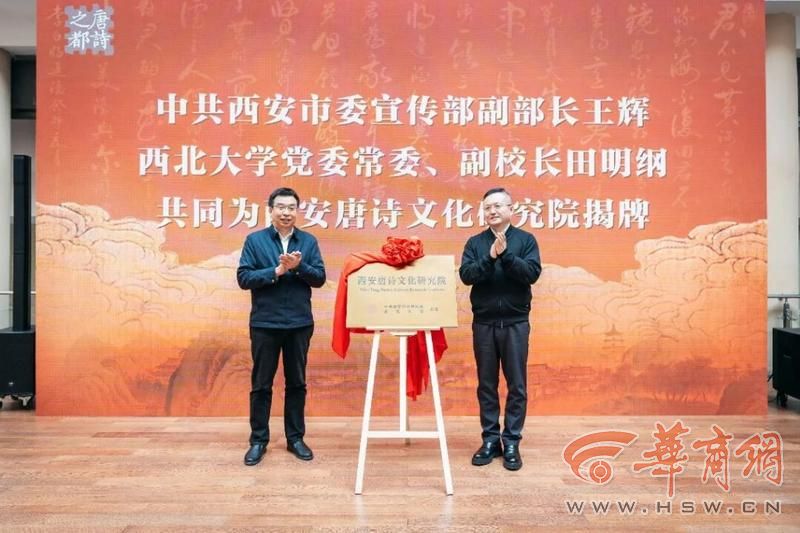 仪式上,田明纲宣读了西安唐诗文化研究院机构成立文件及负责人聘任文件。并与王辉共同为西安唐诗文化研究院揭牌。