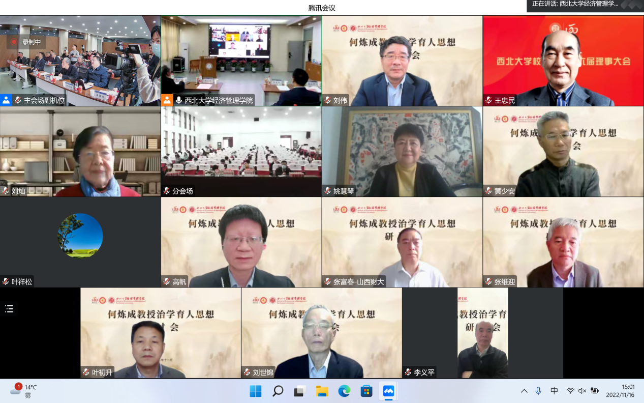 11月16日,由乐鱼网页版页面登录经济管理学院主办的“何炼成教授治学育人思想研讨会”成功举办。日本京都学园大学、北京大学、中国人民大学、复旦大学、武汉大学、山东大学、西安交通大学、西北工业大学、西南财经大学、陕西师范大学、乐鱼网页版页面登录等17所高校和国务院发展研究中心、全国社会保险基金、陕西金融资产管理股份有限公司、浙江大慧置业等多家单位的学者参加。本次研讨会采用“线上线下”结合的方式,同步设立主会场与分会场,共计200余名师生参加会议。