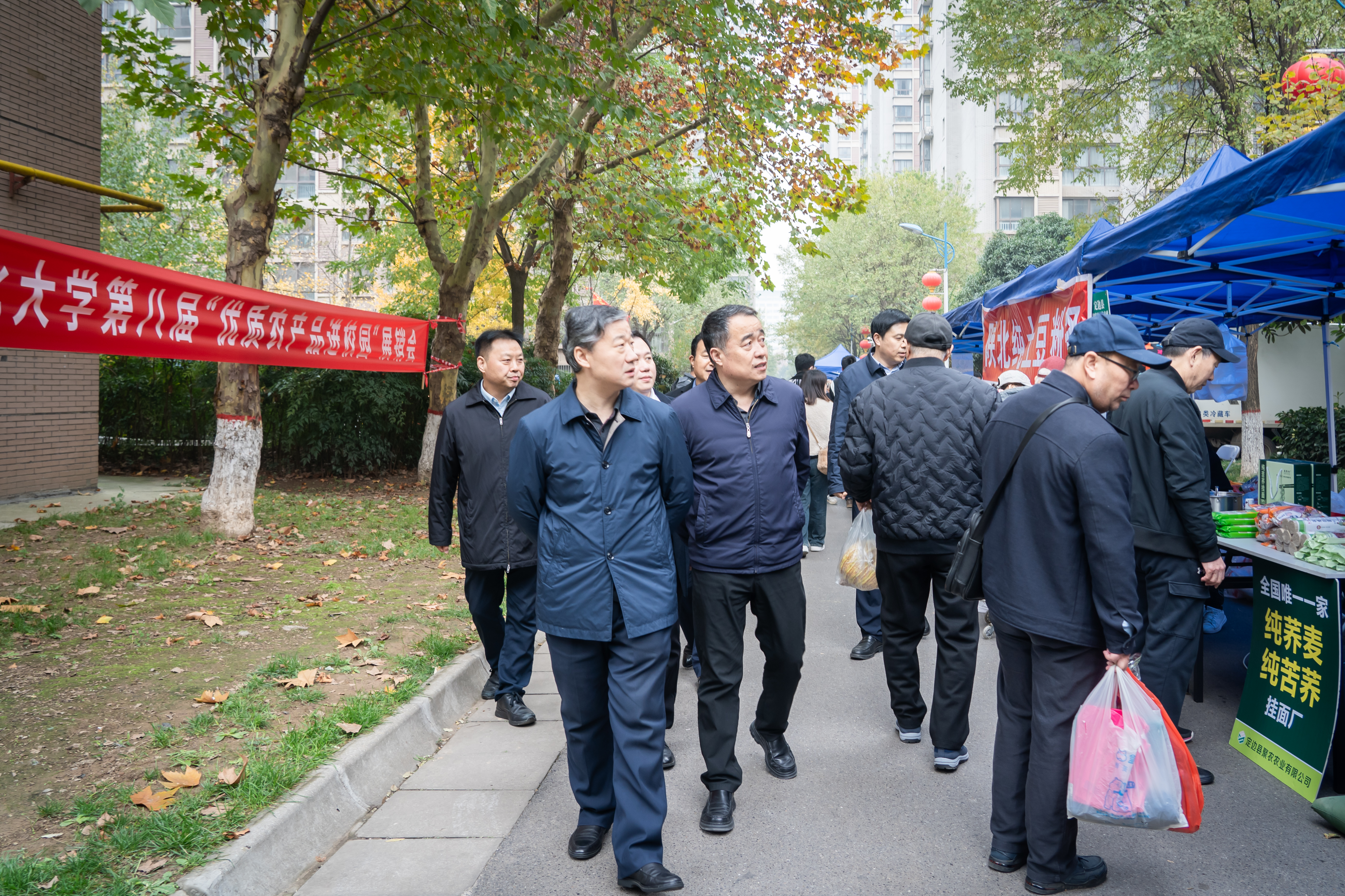 11月23日至24日,由乡村振兴办、后勤集团、校工会、离退休处、保卫处共同组织的第八届“优质农产品进校园”展销会系列活动在长安校区教工公寓区开展。校党委书记蒋林,校党委常委、副校长李振海到活动现场指导工作。