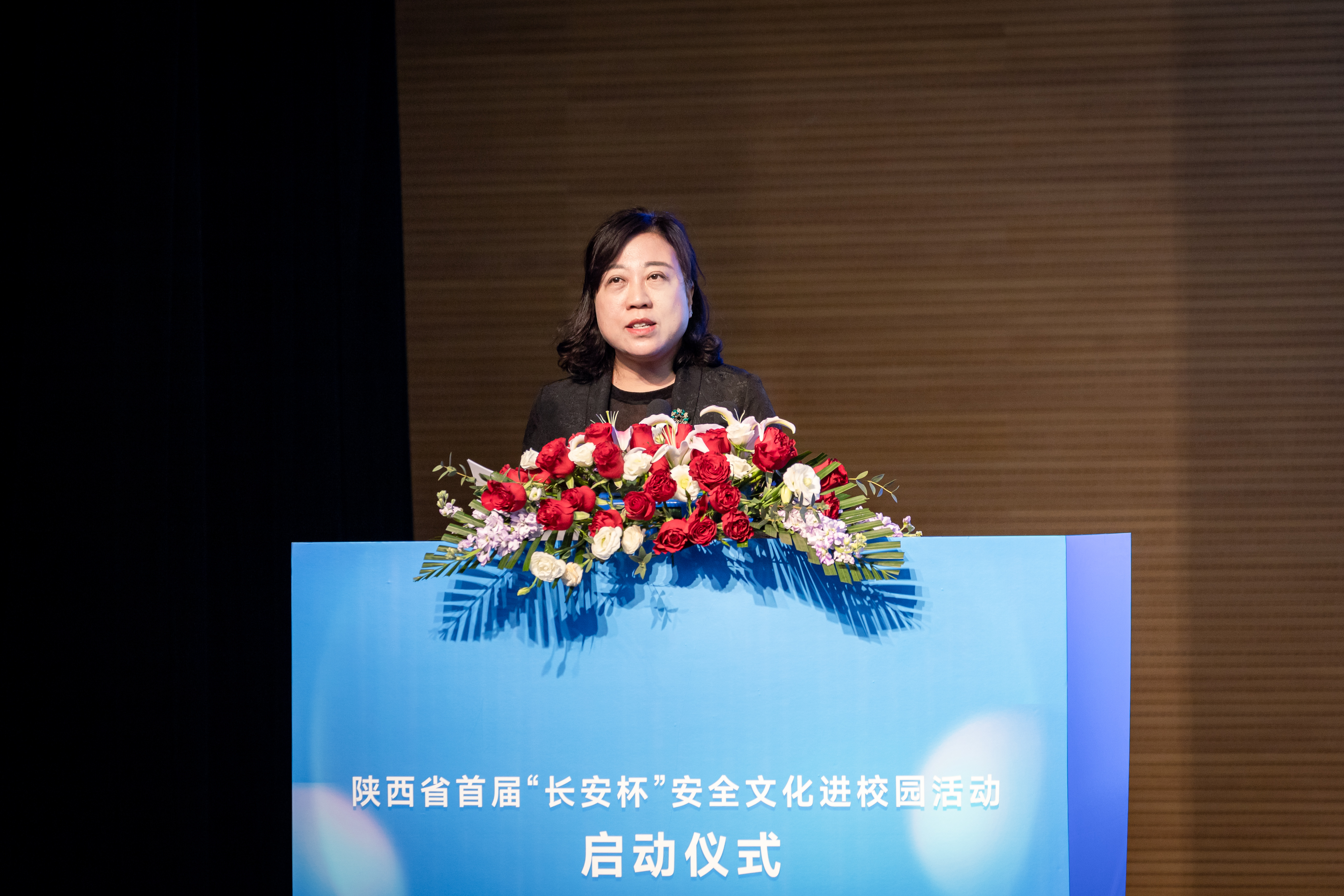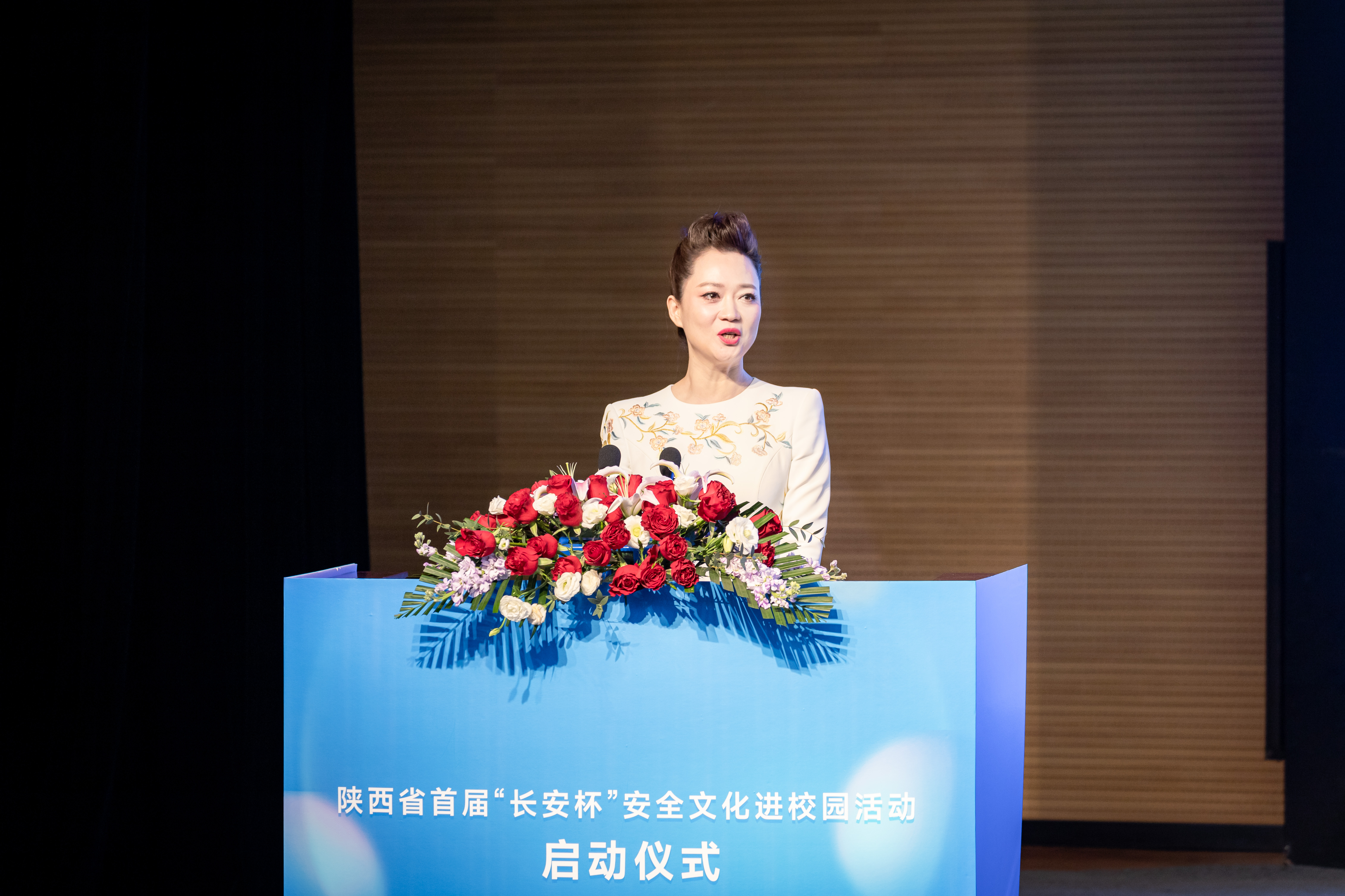 刘丽玲宣读陕西省校园安全文化(宣传)大使的批复文件。受聘代表、省“百青”文艺家、陕西广电融媒体集团(台)节目主持人时冬瑾作了表态发言。
