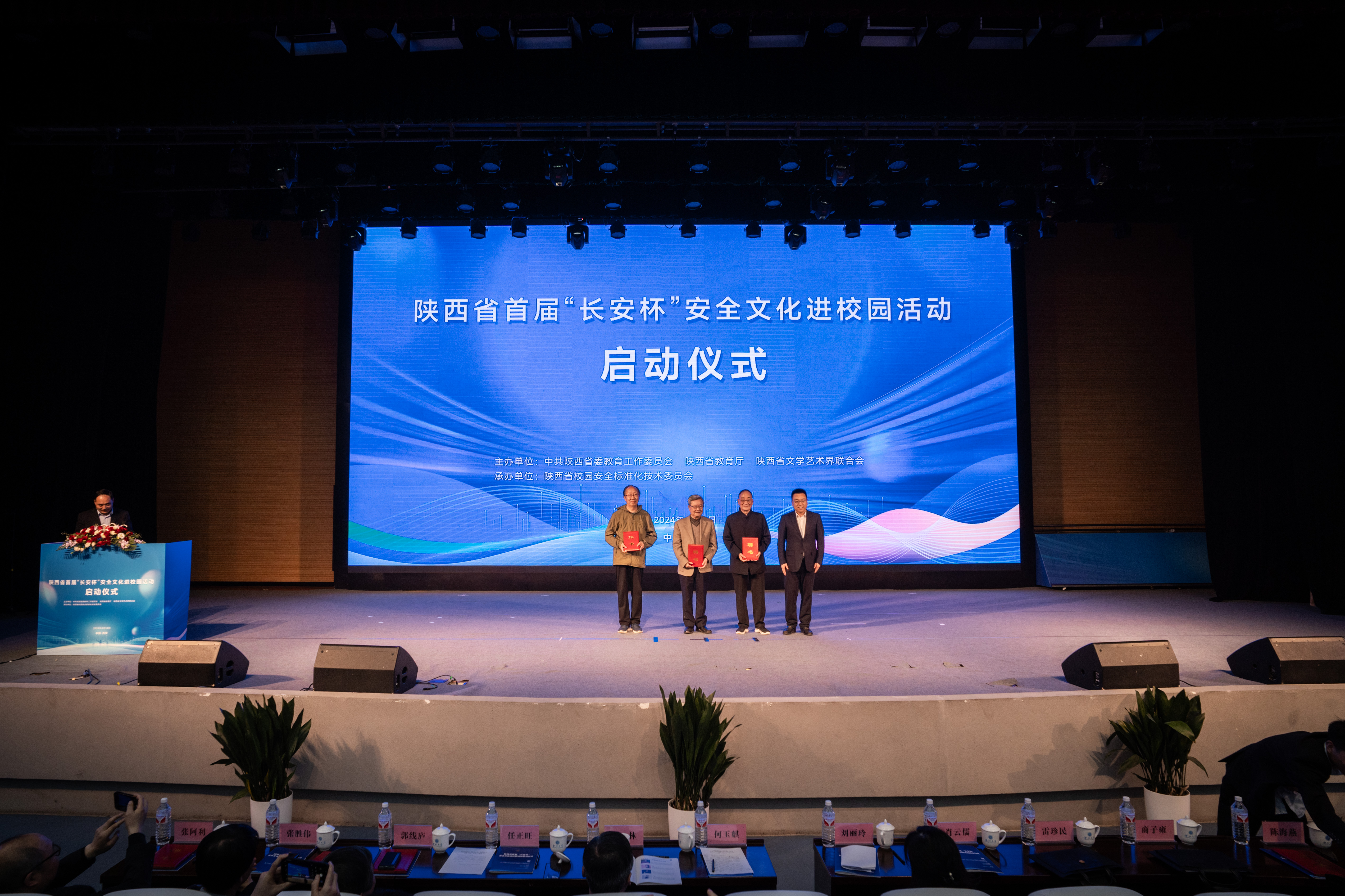 何玉麒、蒋林、吕建荣、刘丽玲为首批校园安全文化顾问、校园安全文化大使、校园安全宣传大使颁发聘书。
