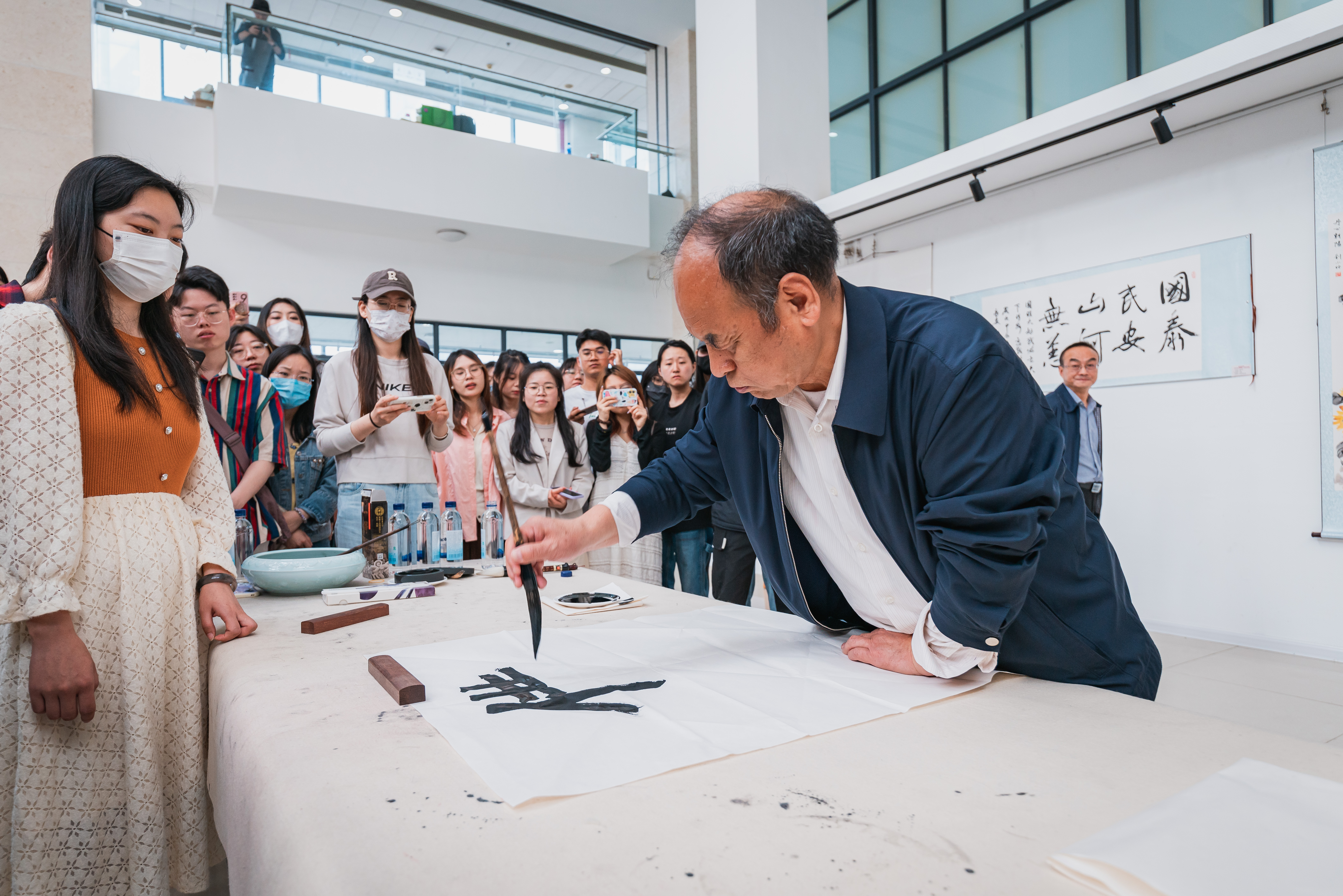 启动仪式后,省校园安全文化顾问、资深报人、文化学者商子雍为师生们作了主题为“读书和文化”的讲座。与会书法界人士与师生开展了安全书法互动展。(图/钱舟 刘瑞乐 陈添翼)
