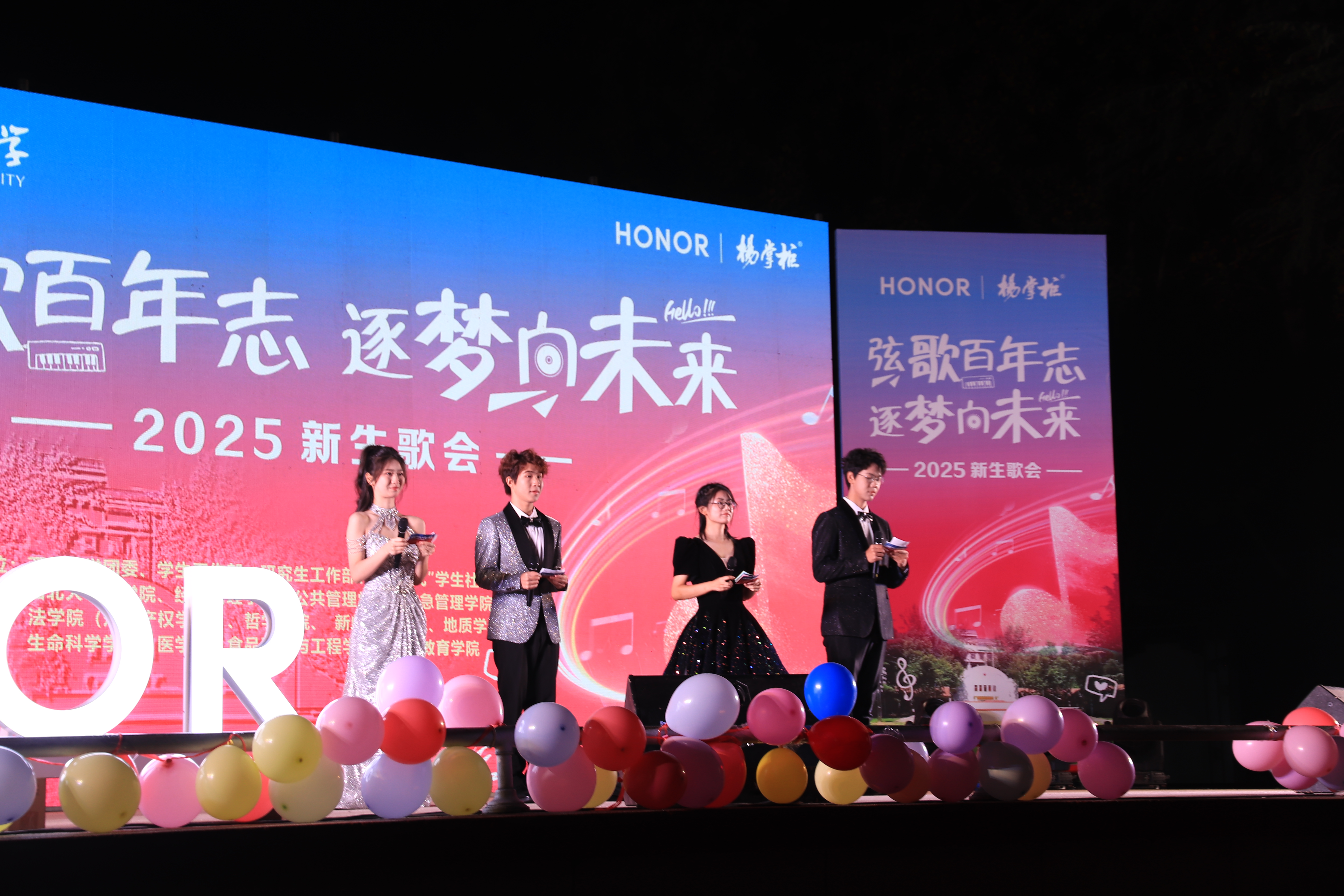 11月11日晚,乐鱼网页版页面登录“弦歌百年志 逐梦向未来”2025年新生歌会在太白校区大草坪举办。校团委书记刘博,经济管理学院党委副书记徐自成,公共管理学院党委副书记韩杰,法学院党委副书记丁晓雯,新闻传播学院党委副书记那龙宇,地质学系党委副书记李政伦,医学院党委副书记杨涛,生命科学学院党委副书记陈露,国际教育学院副院长杨喆出席本次活动。本次歌会由共青团乐鱼网页版页面登录委员会、党委学生工作部、党委研究生工作部、“一站式”学生社区主办,文学院、经济管理学院等十余个院系联合承办,为2025级新同学打造了一场融合青春律动与西大温度的文化洗礼。