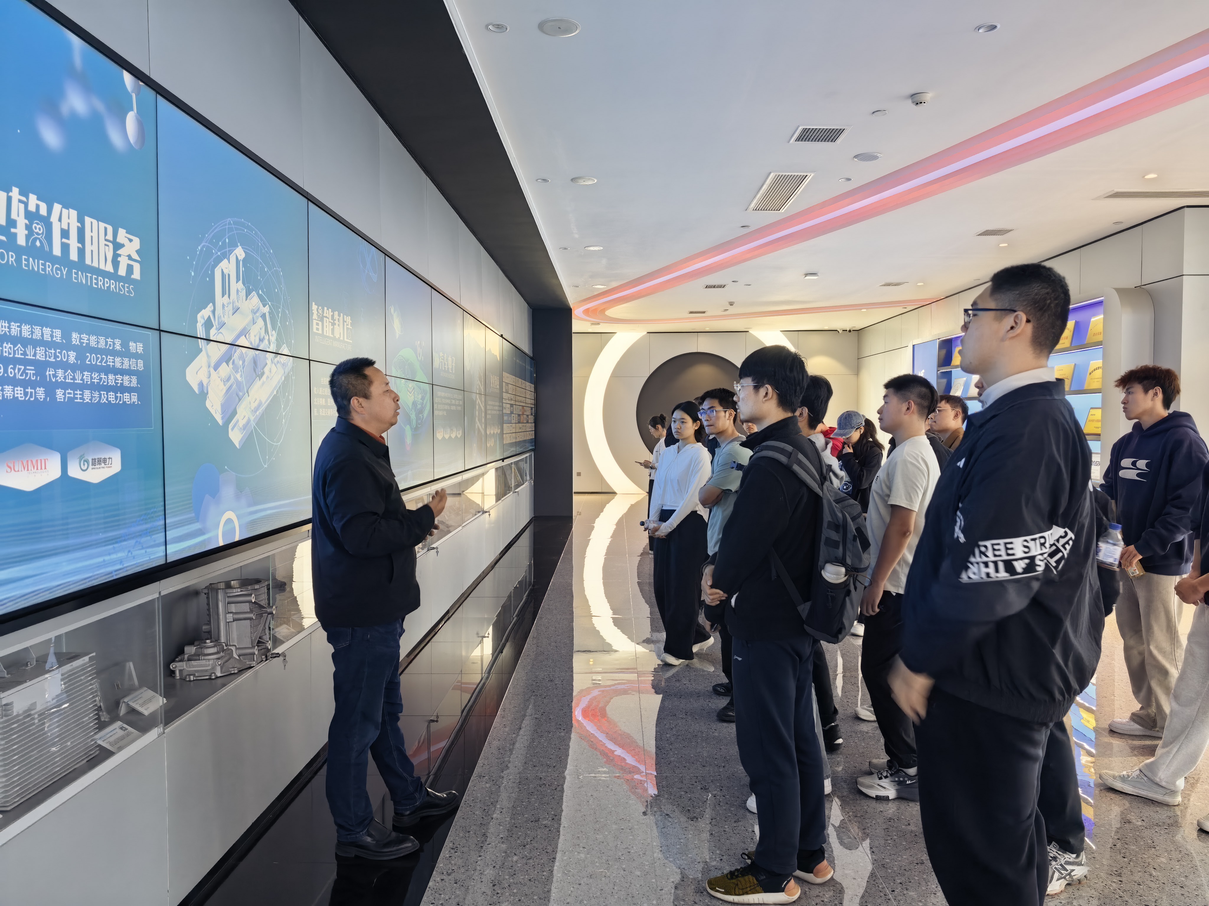 活动首站,师生一行来到西安软件园云汇谷产业社区展厅。西安软件园人才服务与产学合作负责人蔡鹏详细介绍了园区的发展历程、产业布局及未来规划,展示了高新区在软件信息服务、数字经济等领域的创新成果。过程中,蔡鹏与同学们围绕就业创业环境、职业发展规划、校企资源对接等话题展开交流,结合行业趋势为同学们提供了针对性的发展建议。