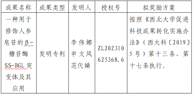 附件:拟许可成果信息及奖励方案