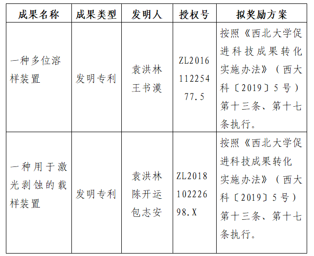 按照《乐鱼网页版页面登录促进科技成果转化实施办法》(西大科〔2019〕5号)相关规定,拟对乐鱼网页版页面登录地质学系袁洪林教授作为成果负责人的2项发明专利权实施转化,现将相关信息公示如下: