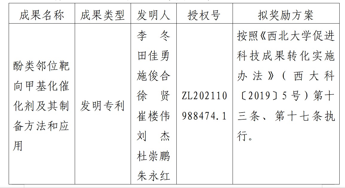 按照《乐鱼网页版页面登录促进科技成果转化实施办法》(西大科〔2019〕5号)相关规定,拟对乐鱼网页版页面登录化工学院李冬教授作为成果负责人的1项发明专利权实施转化,现将相关信息公示如下:
