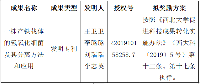 附件:拟许可成果信息及奖励方案