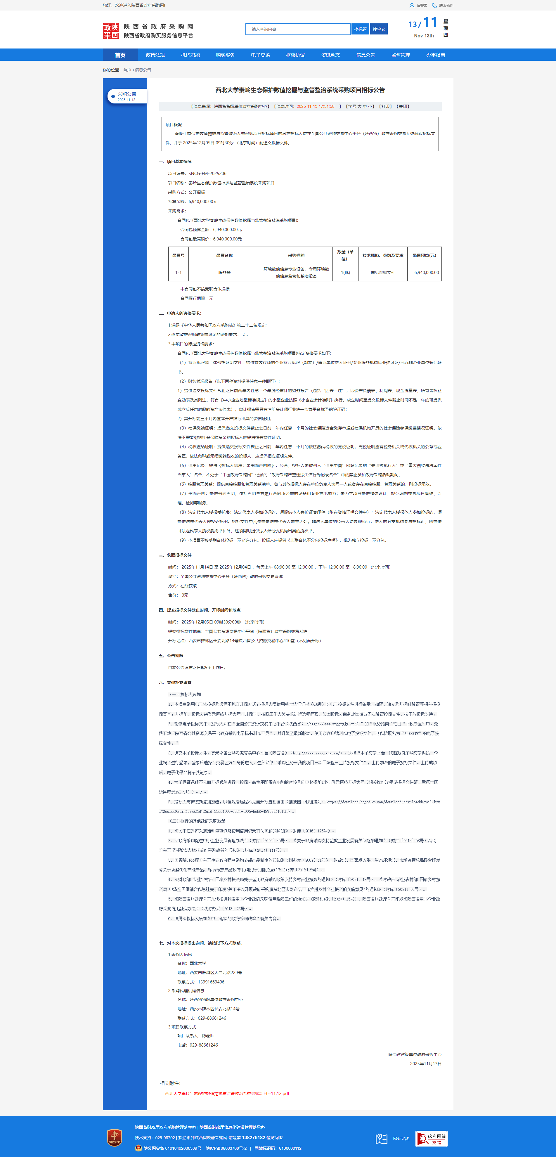 乐鱼网页版页面登录秦岭生态保护数值挖掘与监管整治系统采购项目招标公告