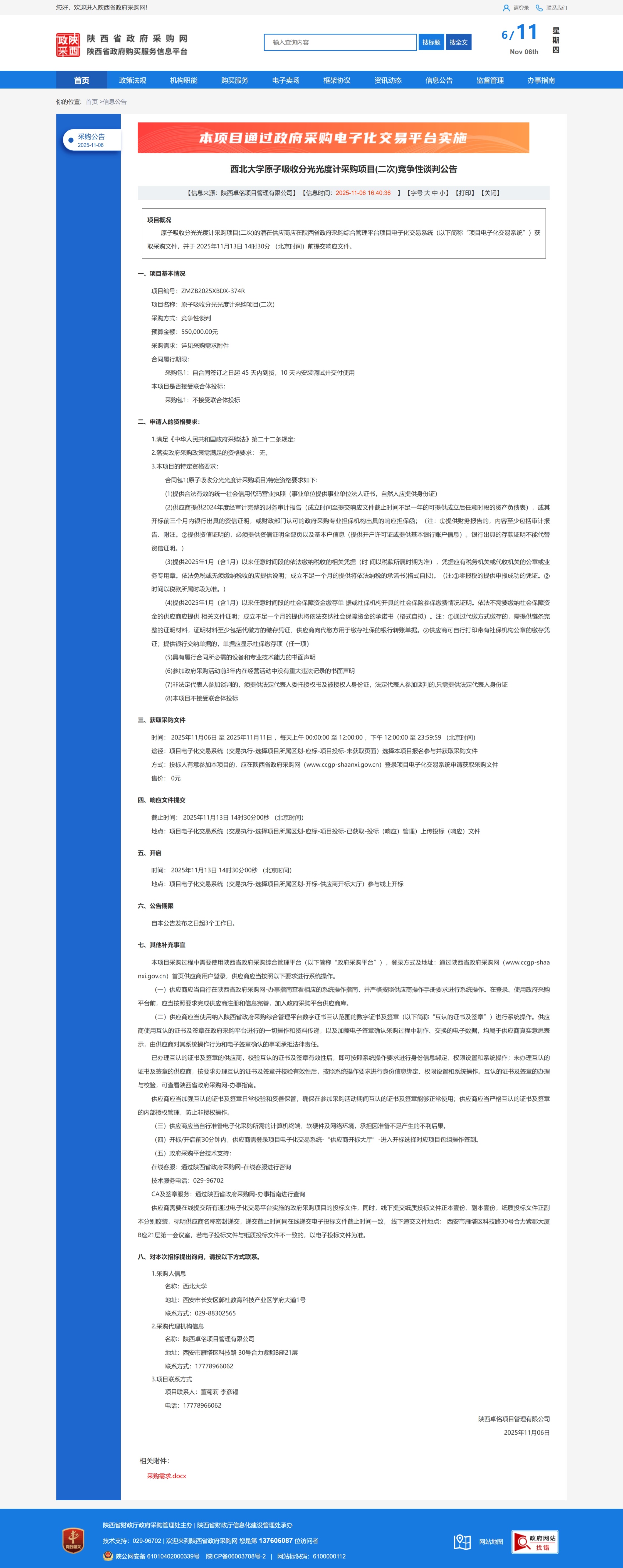 原公告链接:https://www.ccgp-shaanxi.gov.cn/freecms/site/shaanxi/ggxx/info/2025/8a69c6c799f7737f019a583d8959716b.html?noticeType=001013¬iceId=79136a9c-baee-11f0-8063-08c0eb20c666