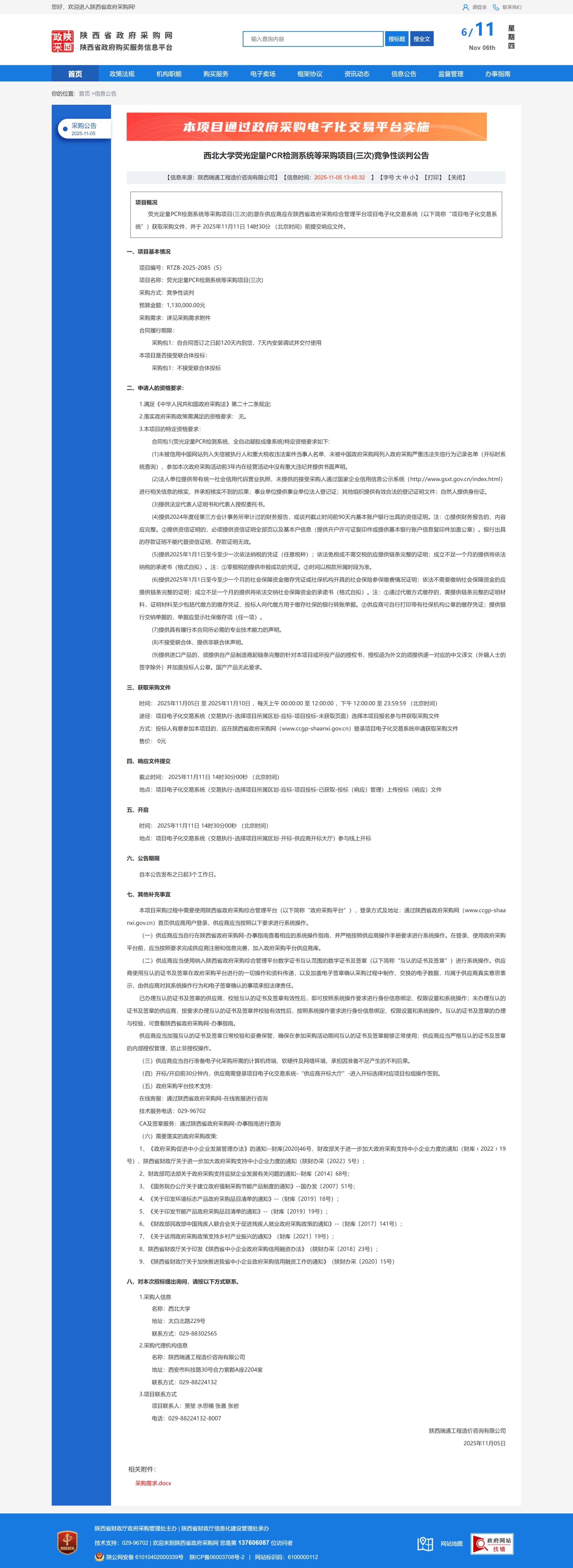 原公告链接:https://www.ccgp-shaanxi.gov.cn/freecms/site/shaanxi/ggxx/info/2025/8a69c9fd99f7767f019a5285c1940c9a.html?noticeType=001013¬iceId=d91ac8d2-ba0c-11f0-8063-08c0eb20c666