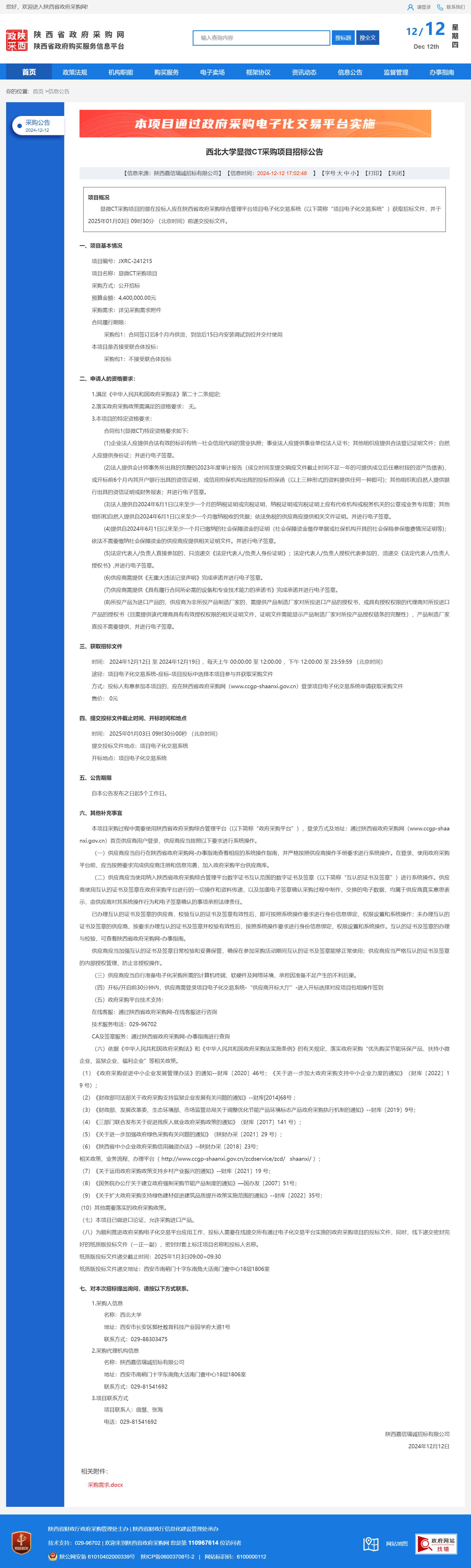 原公告链接:https://www.ccgp-shaanxi.gov.cn/freecms/site/shaanxi/ggxx/info/2024/8a69c5a59218576d0193ba1292507a9d.html?noticeType=001011¬iceId=7add7000-b869-11ef-8063-08c0eb20c666