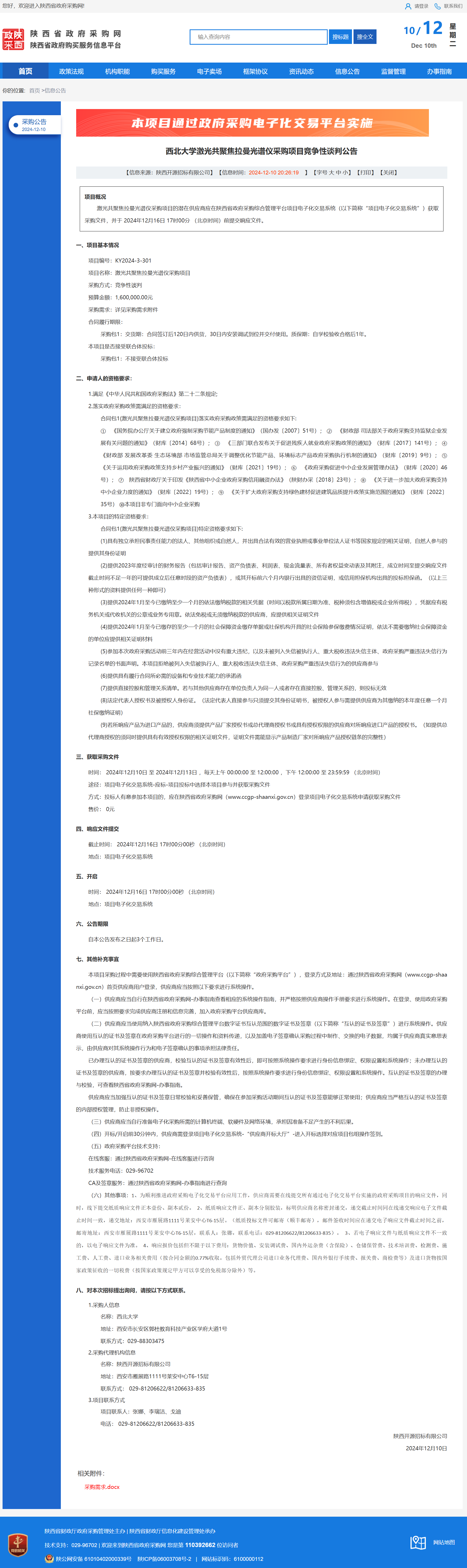 原公告链接:https://www.ccgp-shaanxi.gov.cn/freecms/site/shaanxi/ggxx/info/2024/8a69c5a59218576d0193b081eb986c20.html?noticeType=001013¬iceId=937b25d9-b6f3-11ef-8063-08c0eb20c666