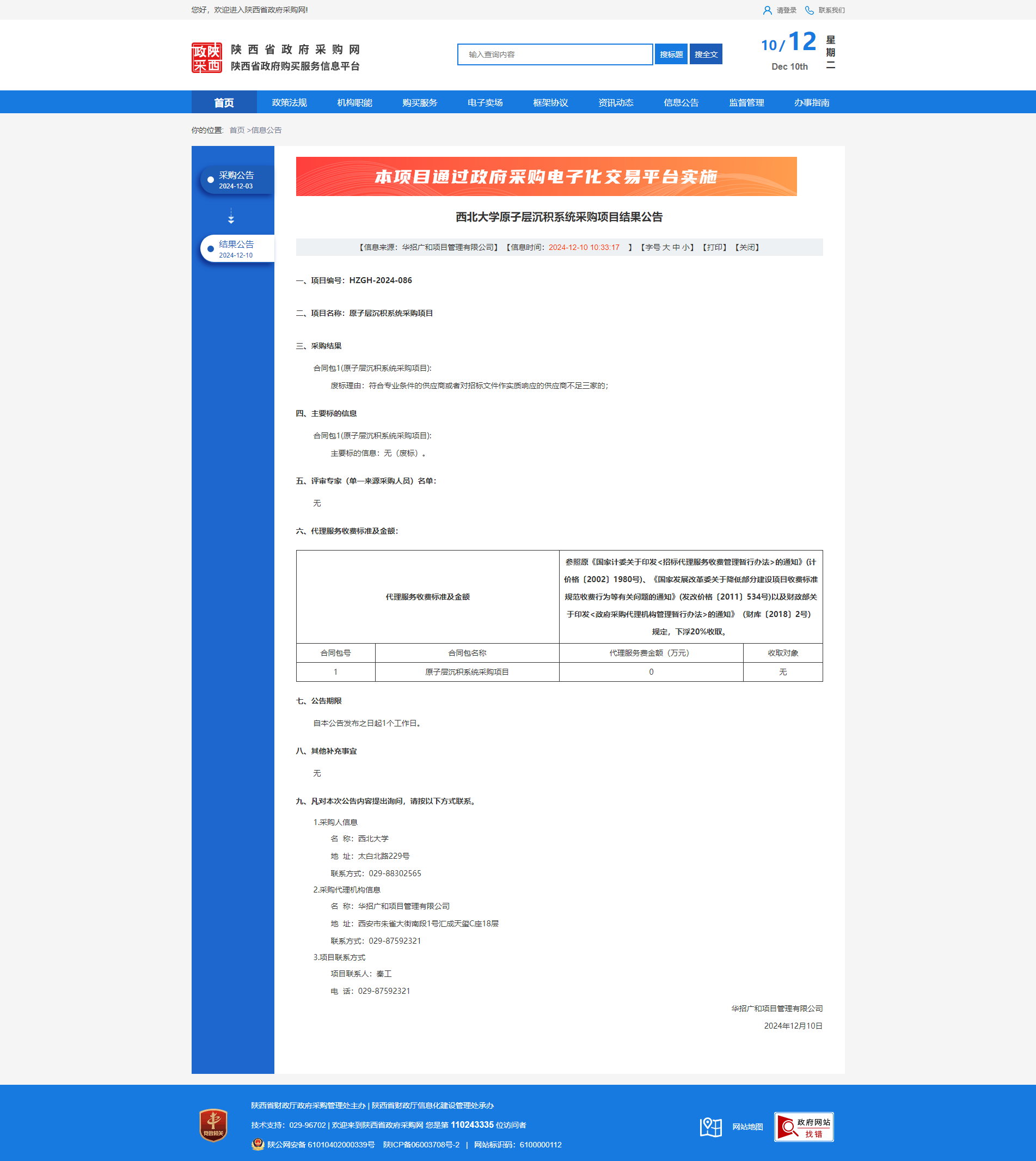 乐鱼网页版页面登录原子层沉积系统采购项目结果公告
