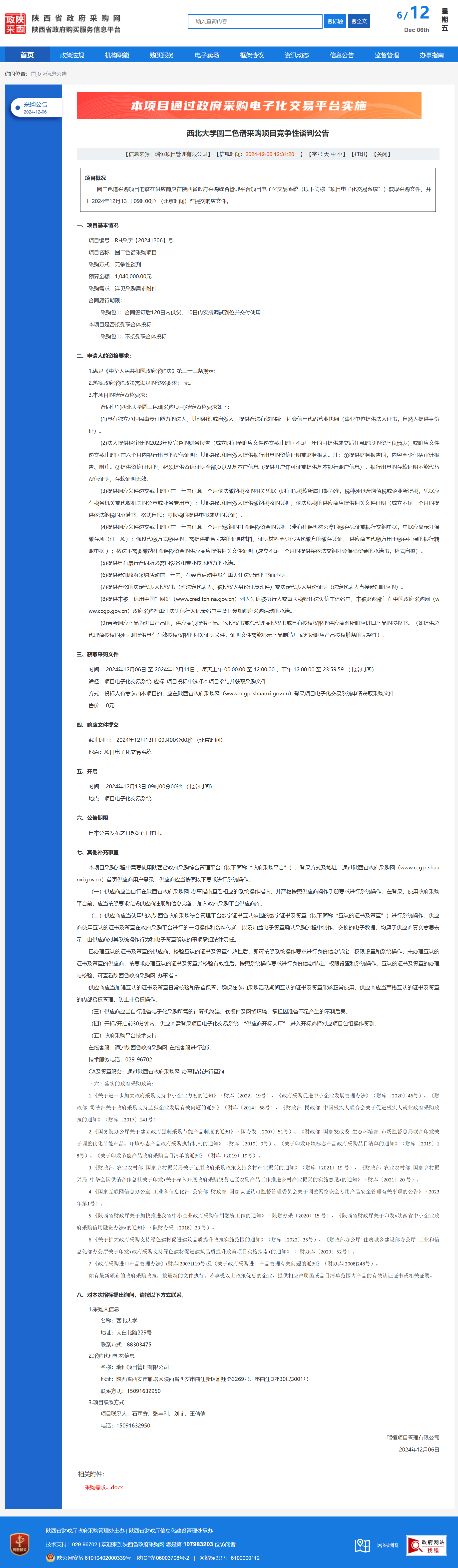 原公告链接:https://www.ccgp-shaanxi.gov.cn/freecms/site/shaanxi/ggxx/info/2024/8a69c44e9218572b01939a34451055bc.html?noticeType=001013¬iceId=8d0f9f1f-b38c-11ef-8063-08c0eb20c666