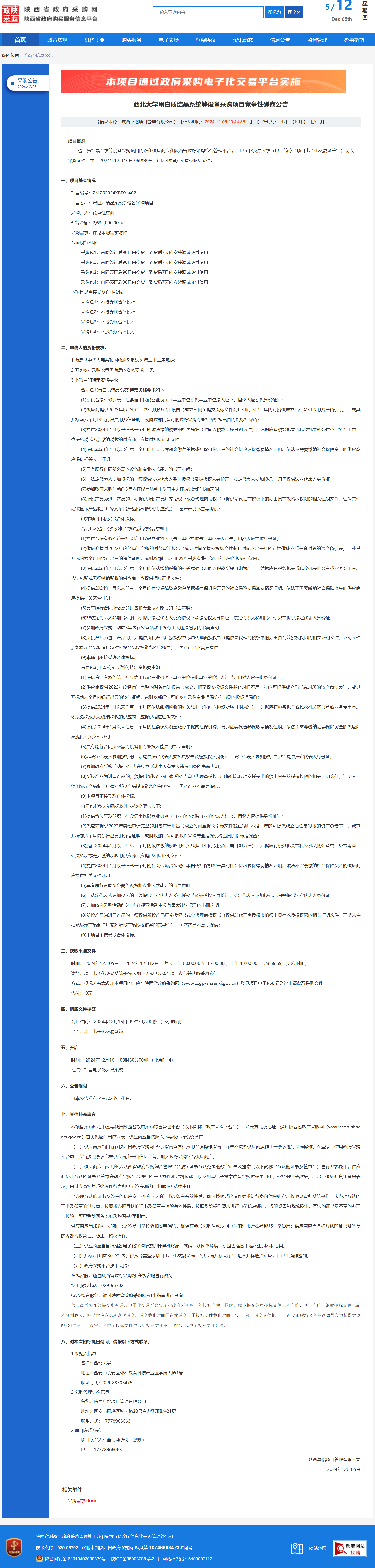 原公告链接:https://www.ccgp-shaanxi.gov.cn/freecms/site/shaanxi/ggxx/info/2024/8a69c5a59218576d019396cdb04e04be.html?noticeType=001016¬iceId=4a7b03e9-b308-11ef-8063-08c0eb20c666